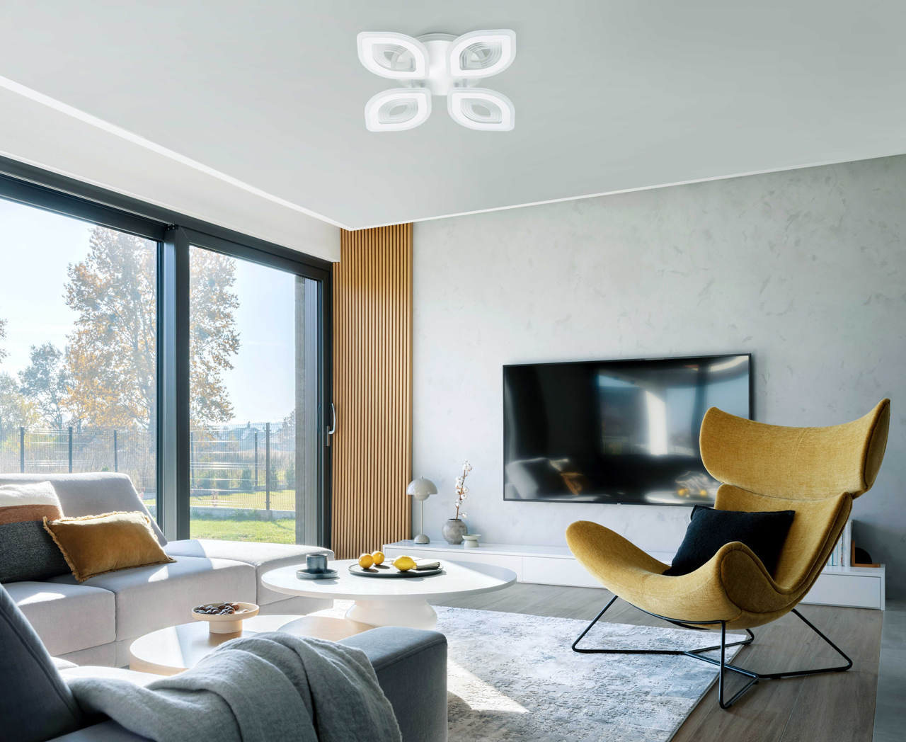 Многорежимность с изменением цветовой температуры и яркости света   является элементом светодизайна.Подсветка потолка создает праздничное настроение.Качественные светодиоды обеспечивают яркое освещение и долгий срок службы.Наличие ПДУ позволяет управлять режимами освещения.Компактный светильник для стандартной высоты потолка.