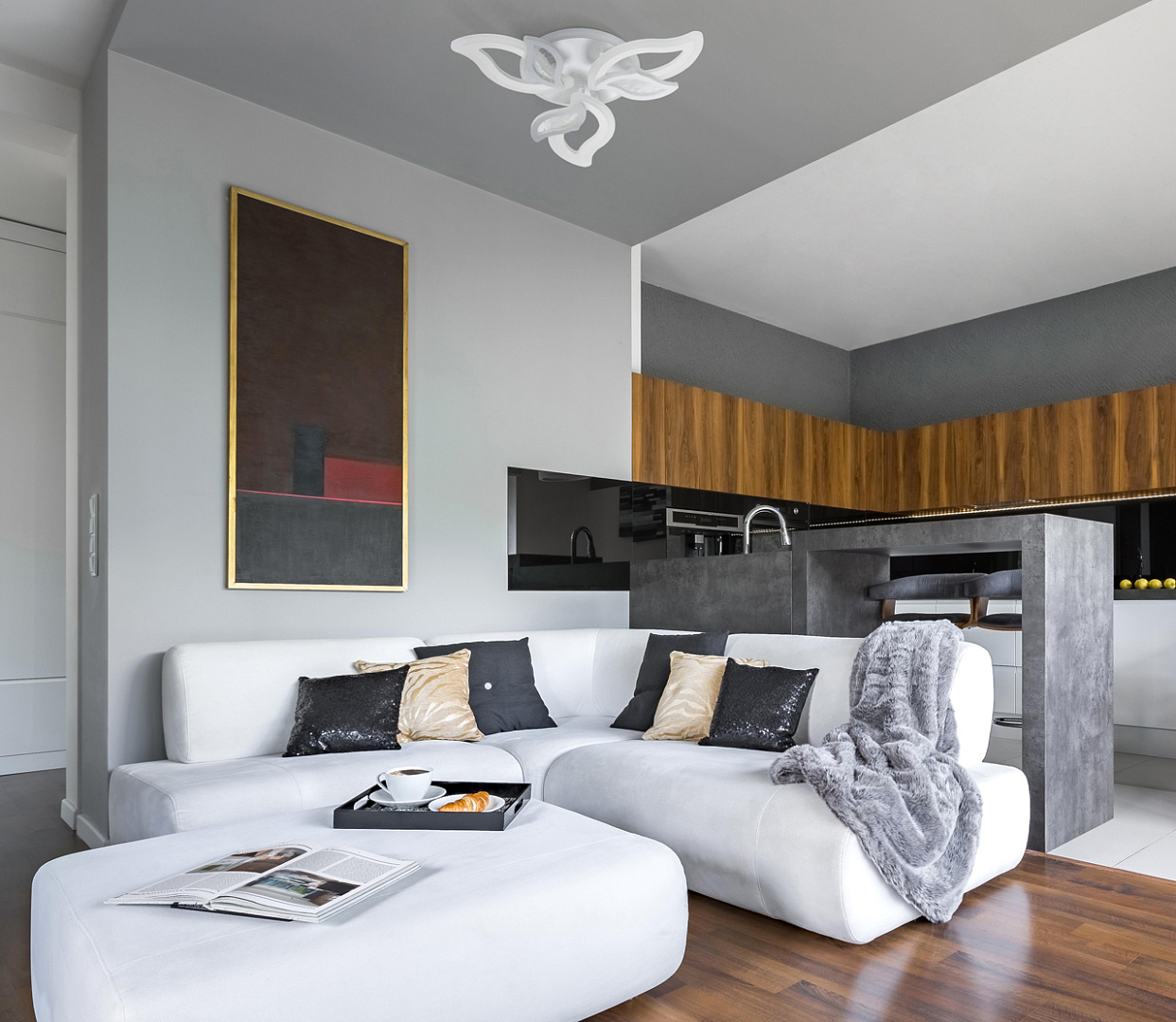 Многорежимность с изменением цветовой температуры и яркости света   является элементом светодизайна.Качественные светодиоды обеспечивают яркое освещение и долгий срок службы.Наличие ПДУ позволяет управлять режимами освещения.Плавный диммер создает требуемое настроение в помещении.Универсальный белый цвет подойдет к любому интерьеру.Компактный светильник для стандартной высоты потолка.