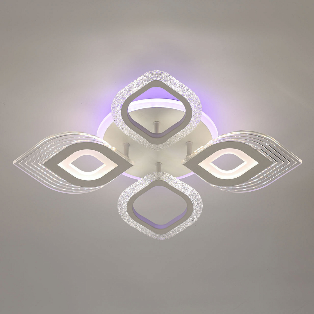 Многорежимность с изменением цветовой температуры и яркости света   является элементом светодизайна.Подсветка потолка создает праздничное настроение.Качественные светодиоды обеспечивают яркое освещение и долгий срок службы.Наличие ПДУ позволяет управлять режимами освещения.Компактный светильник для стандартной высоты потолка.