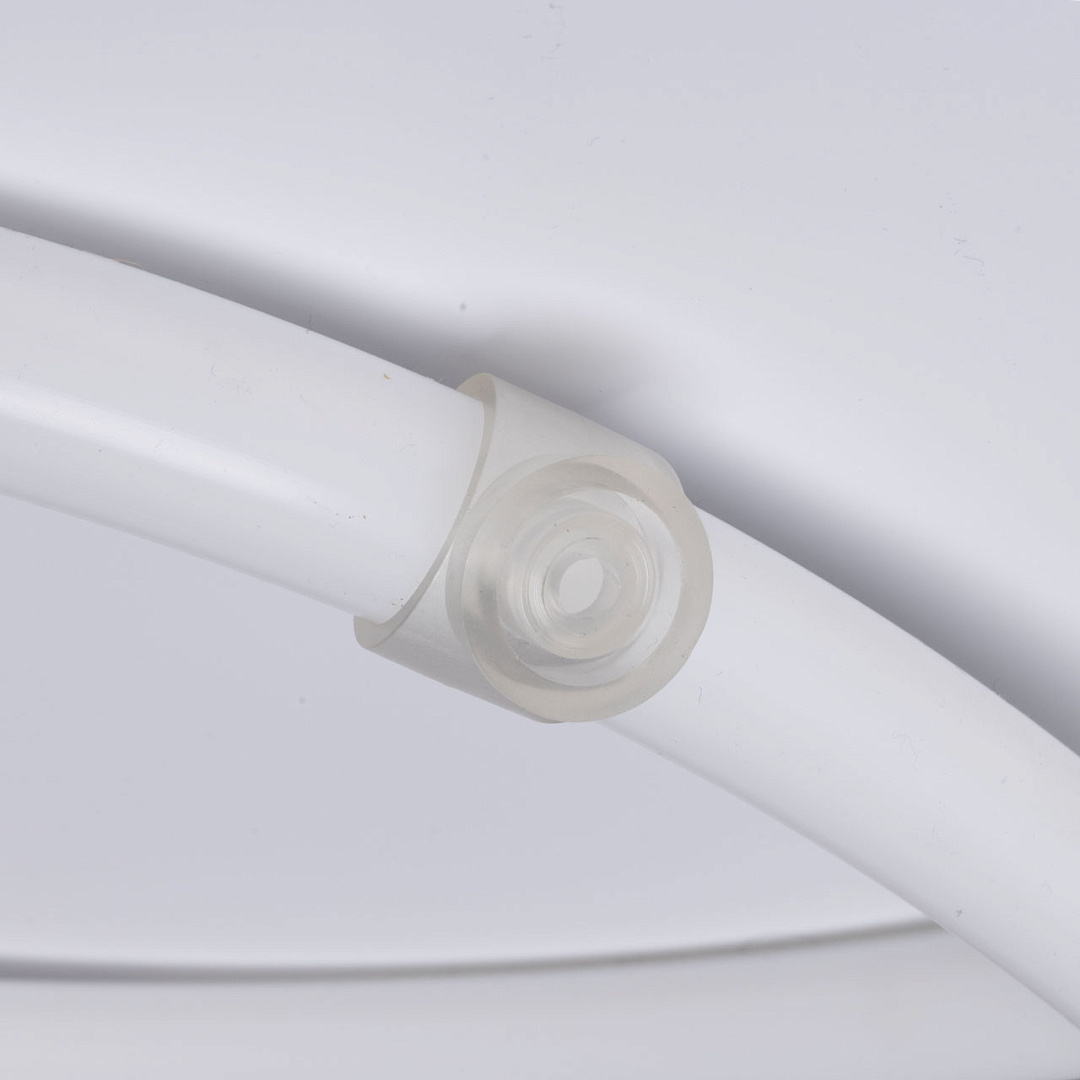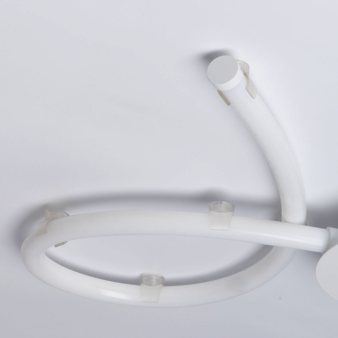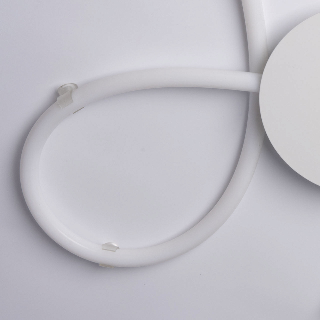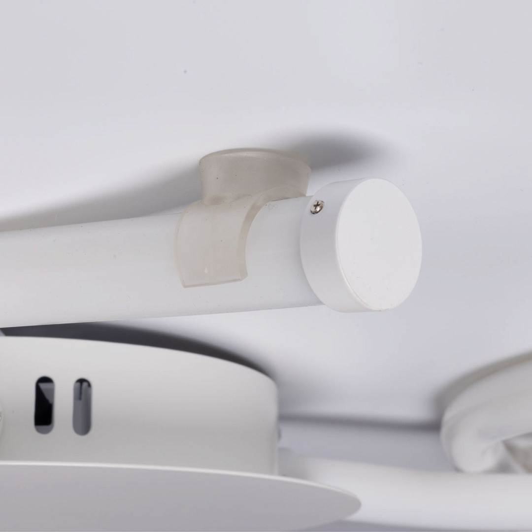 Белый цвет основания придает потолочной люстре легкости и воздушности. Изящно изогнутые плафоны создают единый и гармоничный образ светильника. Изюминкой светильника является возможность изменения формы. Для этого достаточно использовать акриловые держатели, входящие в комплект.  Матовый силикон плафонов создает мягкое освещение. Компактный размер светильника подойдет к стандартным потолкам и сохранит пространство комнаты. Светодиодные источники света экономичны и безопасны.