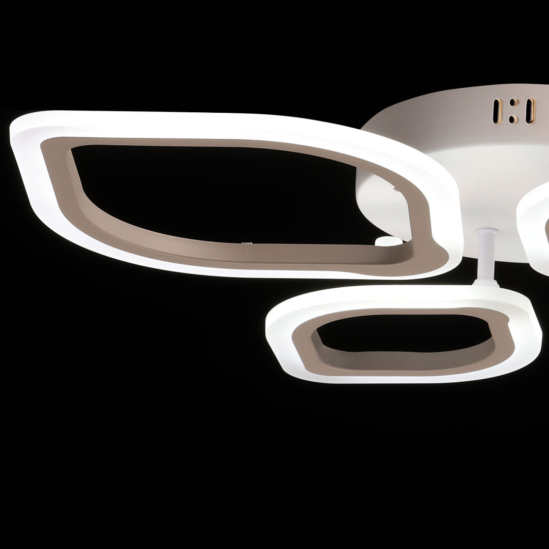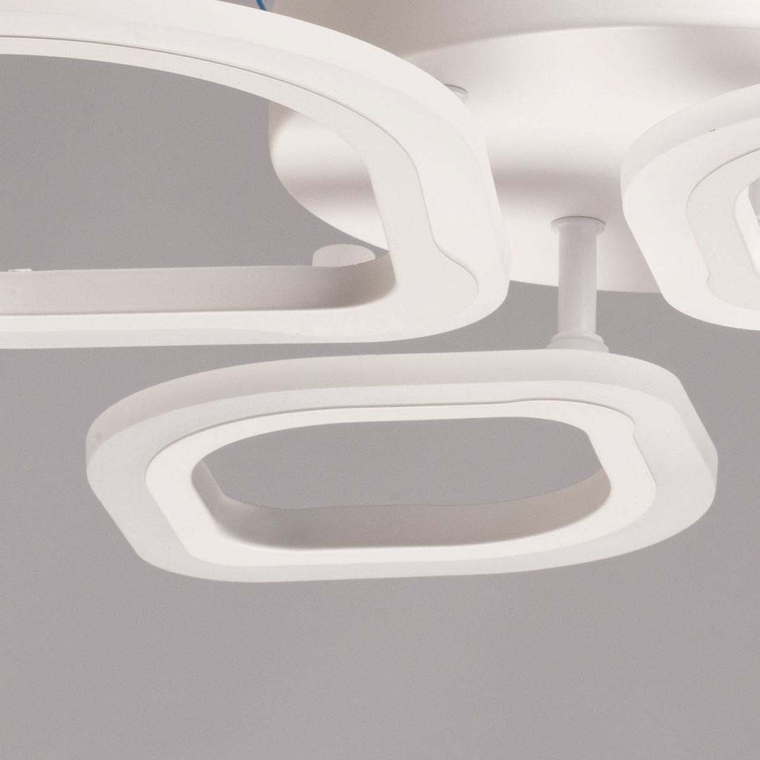 Многорежимность с изменением цветовой температуры от 3000К до 6500К и яркости света является элементом светодизайна и позволяет подобрать комфортную температуру света. Качественные светодиоды и корпус из сплава алюминия  обеспечивают яркое освещение и долгий срок службы. Плавно изогнутые плафоны придают потолочной люстре элегантности и, благодаря им, светильник становится арт объектом. Наличие ПДУ  обеспечивает комфортное переключение режимов освещения. Компактный светильник для стандартной высоты потолка. Светодиодные источники света экономичны и безопасны.