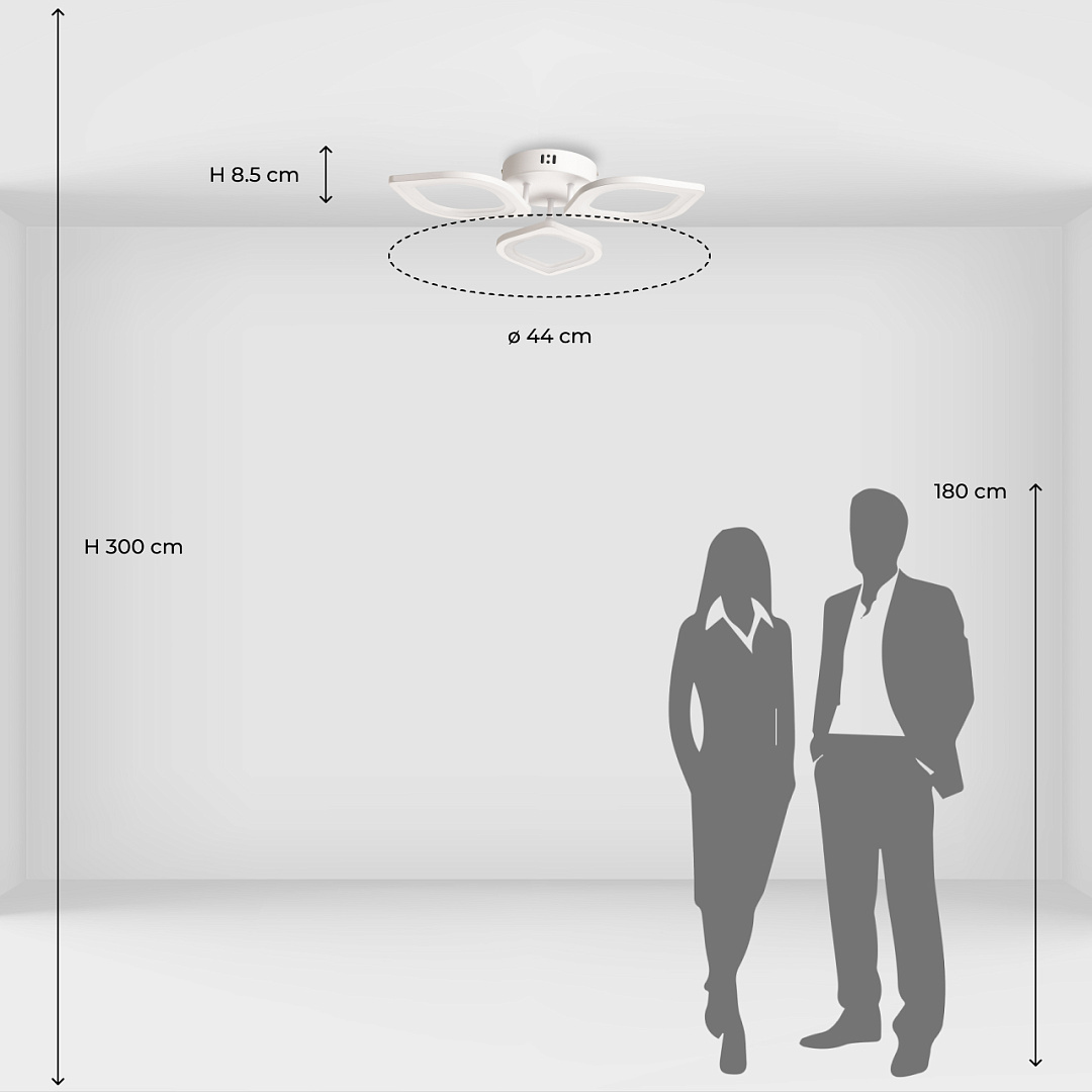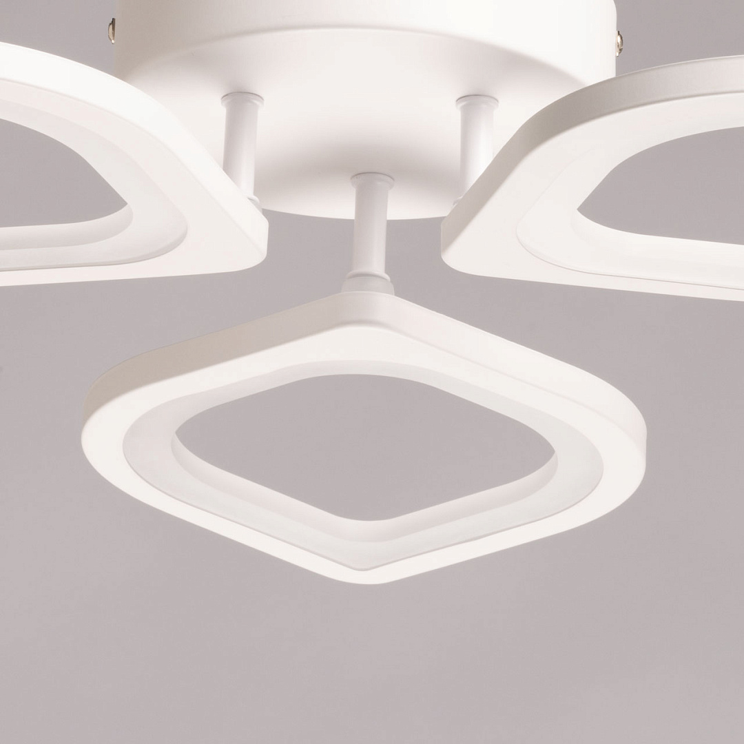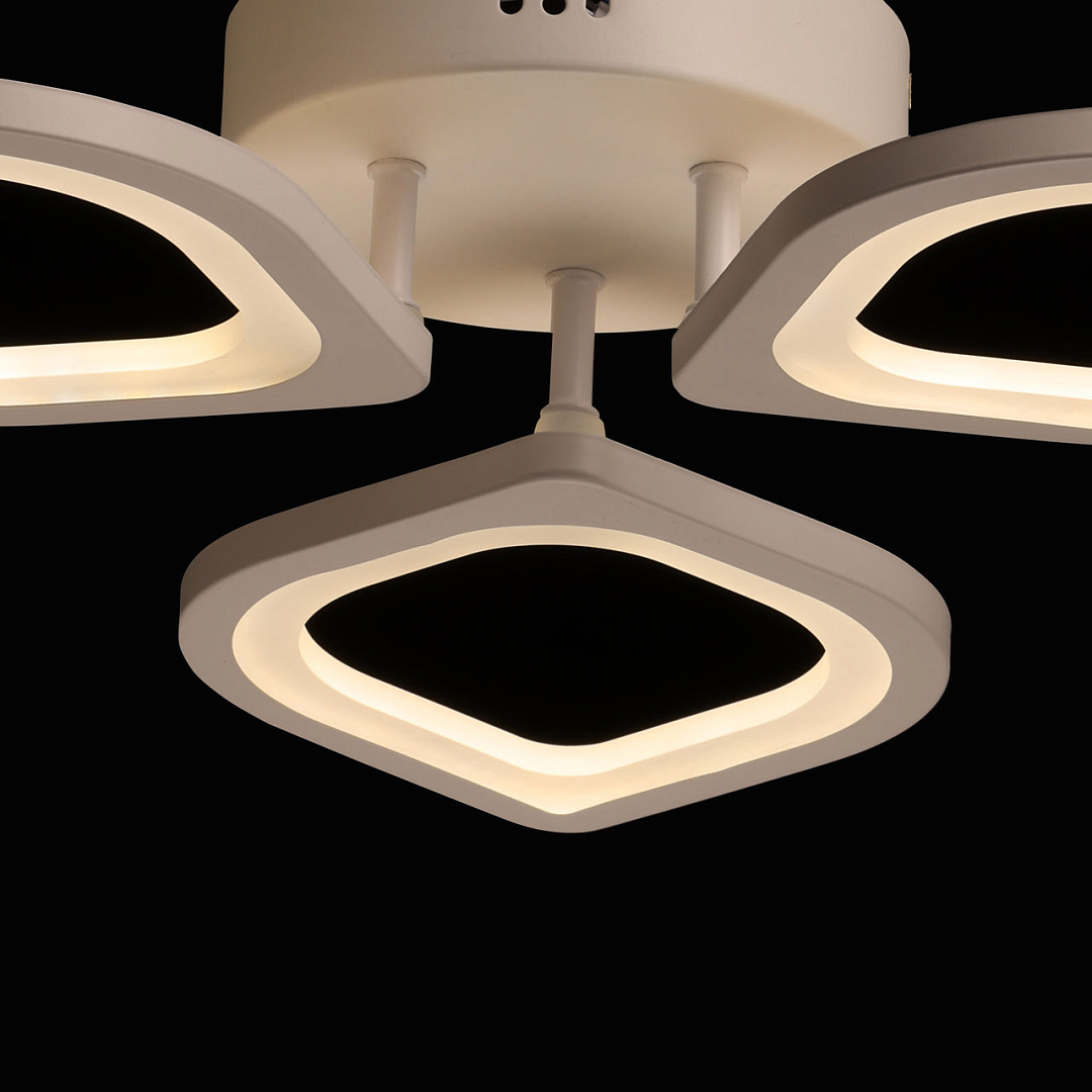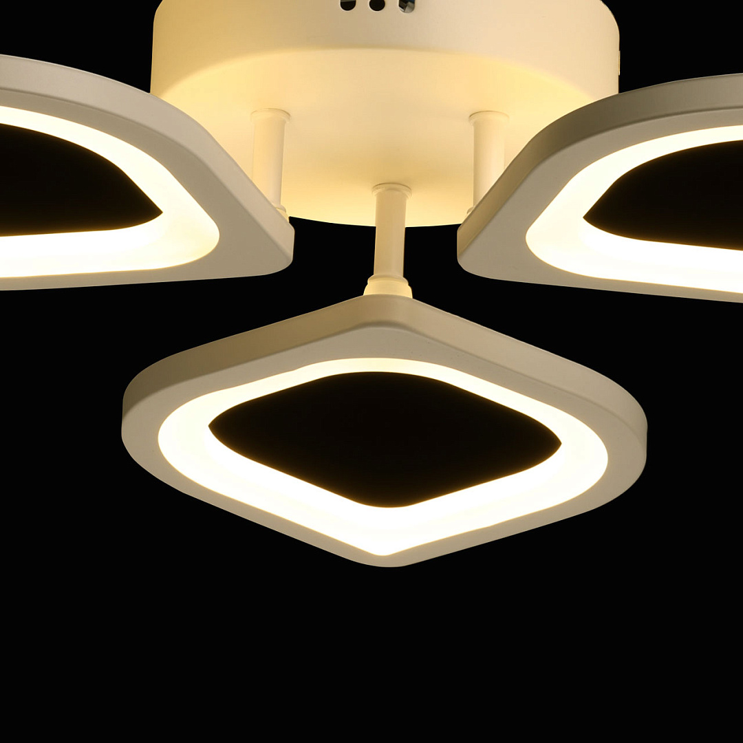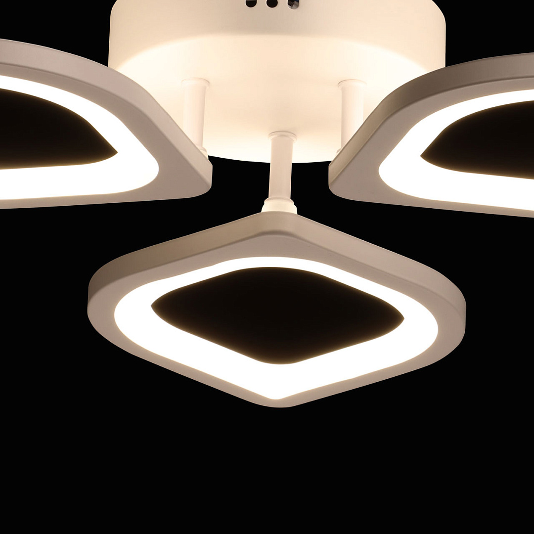 Многорежимность с изменением цветовой температуры от 3000К до 6500К и яркости света является элементом светодизайна и позволяет подобрать комфортную температуру света. Качественные светодиоды и корпус из сплава алюминия  обеспечивают яркое освещение и долгий срок службы. Плавно изогнутые плафоны придают потолочной люстре элегантности и, благодаря им, светильник становится арт объектом. Наличие ПДУ  обеспечивает комфортное переключение режимов освещения. Компактный светильник для стандартной высоты потолка. Светодиодные источники света экономичны и безопасны.