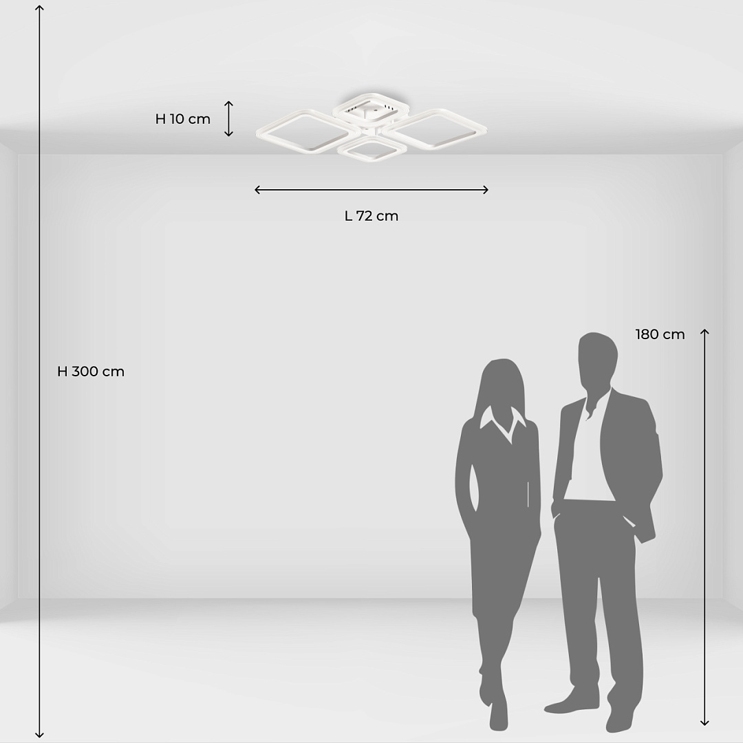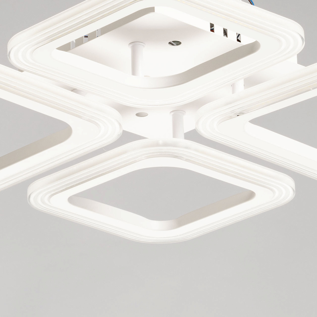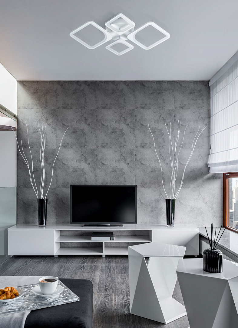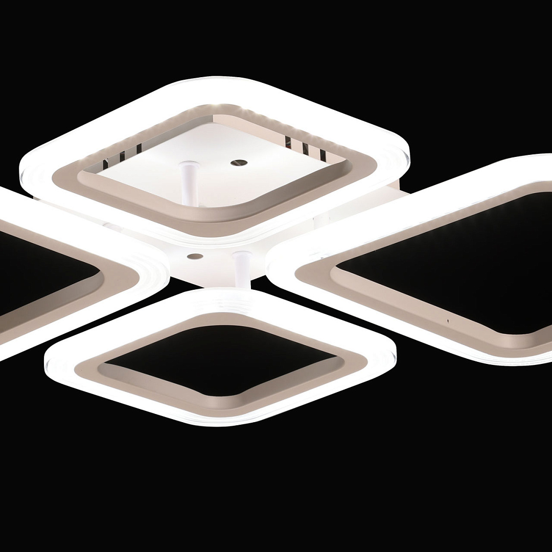 Многорежимность с изменением цветовой температуры от 3000К до 6500К и яркости света является элементом светодизайна и позволяет подобрать комфортную температуру света. Качественные светодиоды и корпус из сплава алюминия  обеспечивают яркое освещение и долгий срок службы. Полупрозрачный акрил создает красивые переливы света. Плавно изогнутые плафоны придают потолочной люстре элегантности и, благодаря им, светильник становится арт объектом. Наличие ПДУ  обеспечивает комфортное переключение режимов освещения. Компактный светильник для стандартной высоты потолка. Светодиодные источники света экономичны и безопасны.
