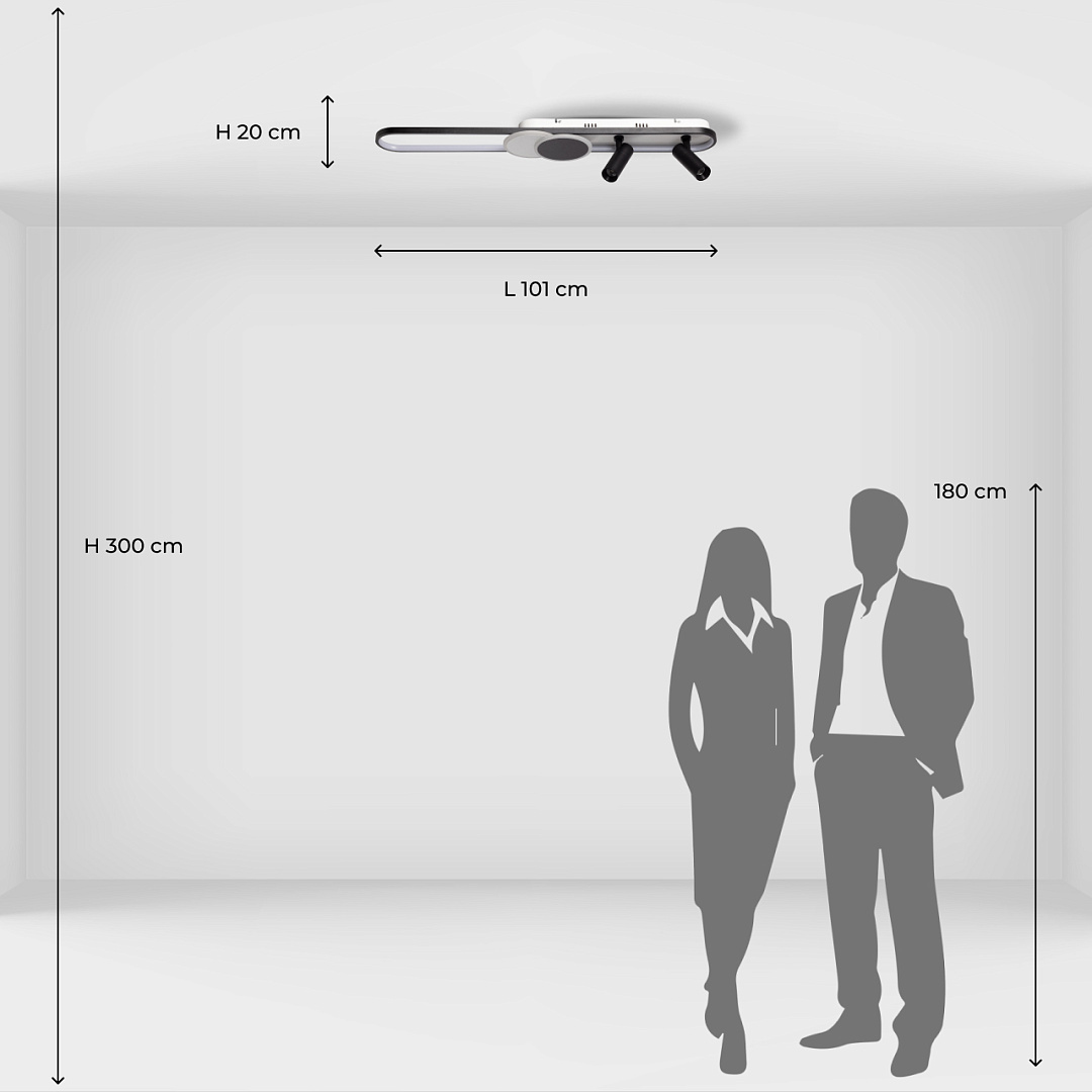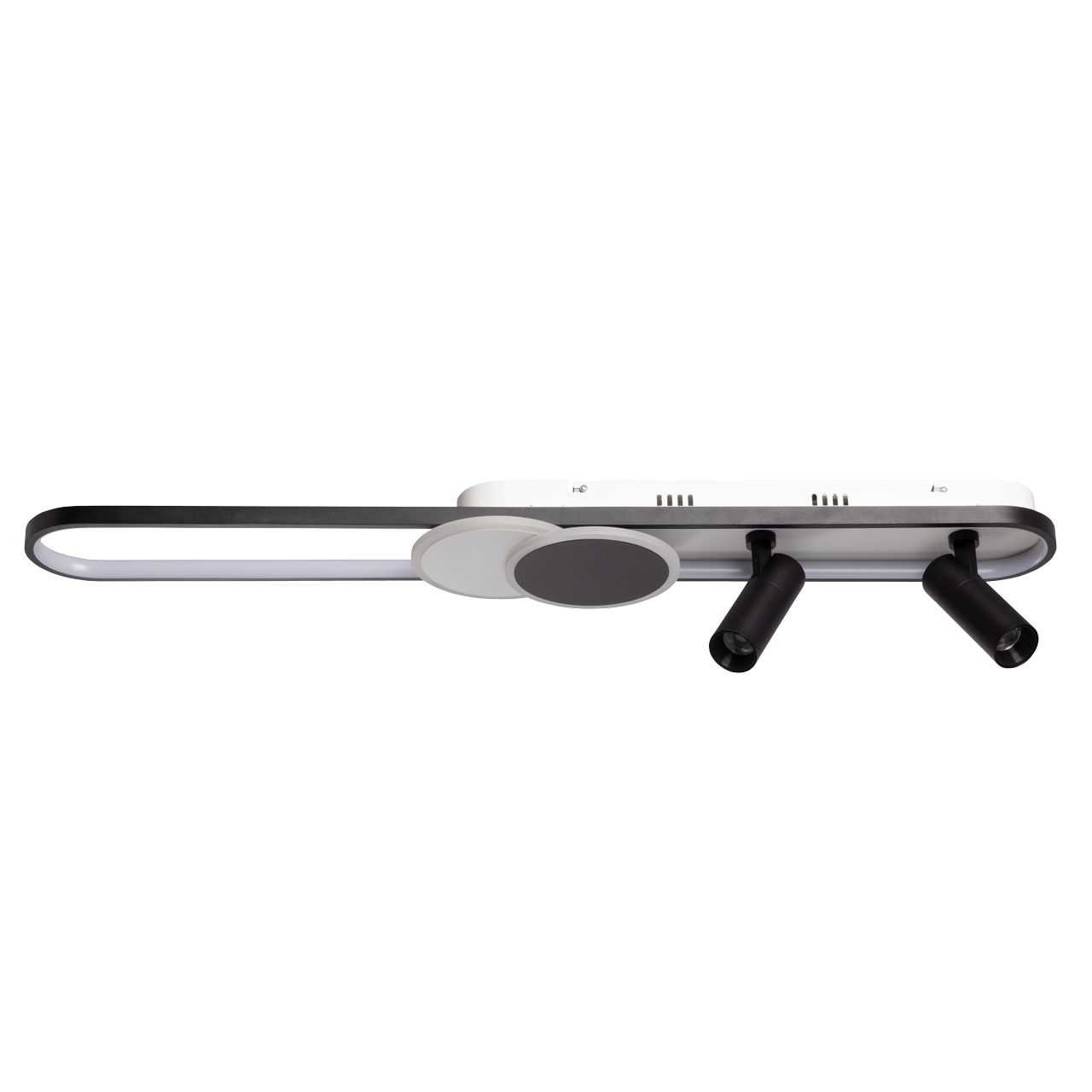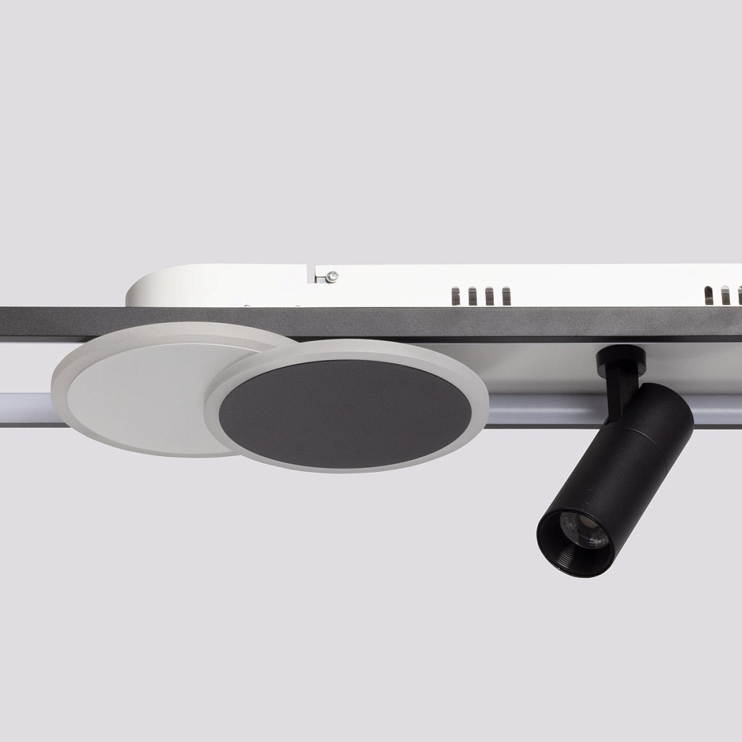 Контрастный черный цвет основания и плафонов в сочетании с белым цветом обеспечивает актуальный дизайна и добавляет концептуальности. Матовый акрил мягко рассеивает свет, создавая комфортное освещение. Многорежимность освещения от 3000К до 6500К позволяет подобрать комфортную температуру света. Качественные светодиоды экономичны и безопасны. Поворотные споты позволяют направлять световой поток в нужную сторону, что создает комфортное освещение. Компактный размер потолочной люстры подойдет к интерьерам со стандартным потолком. Наличие ПДУ удобно в эксплуатации.