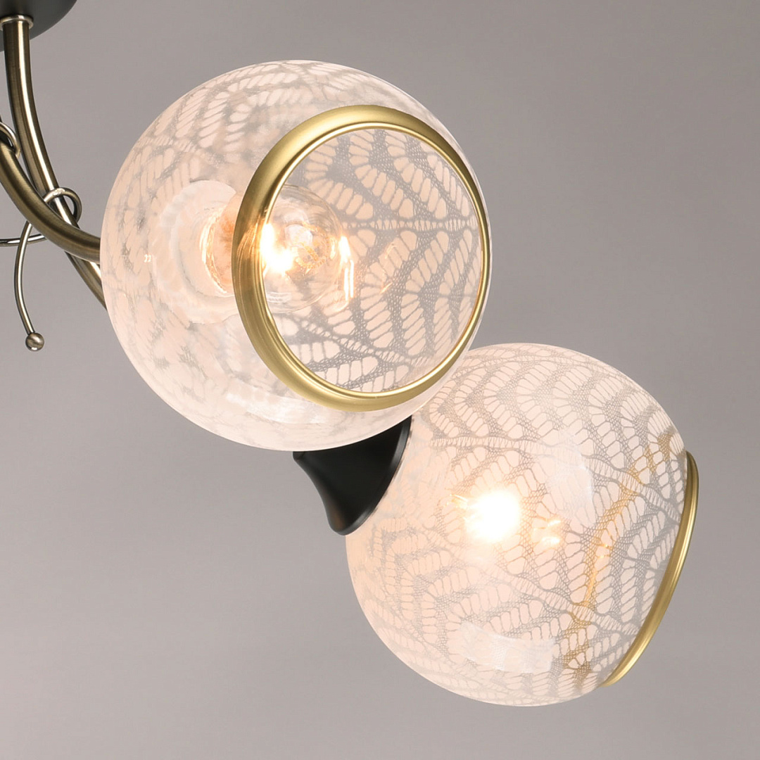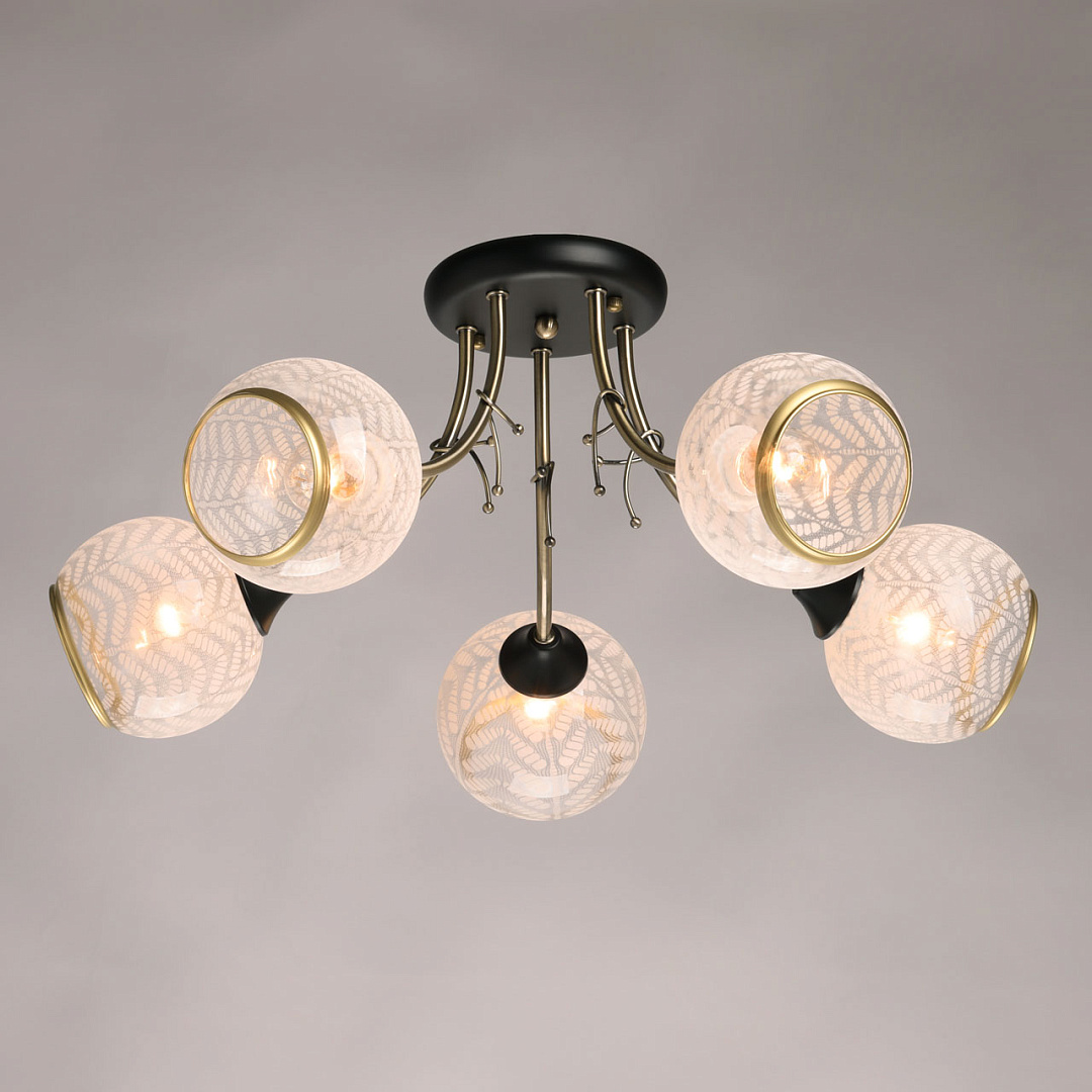 Актуальное сочетание контрастного черного цвета и цвета латуни. Плафоны с оригинальным растительным рисунком соответствуют тренду природности. Отделка кантом придает плафонам законченный вид. Компактная высота модели идеальна для стандартной высоты потолка. Заменяемые источники света удобны в эксплуатации.