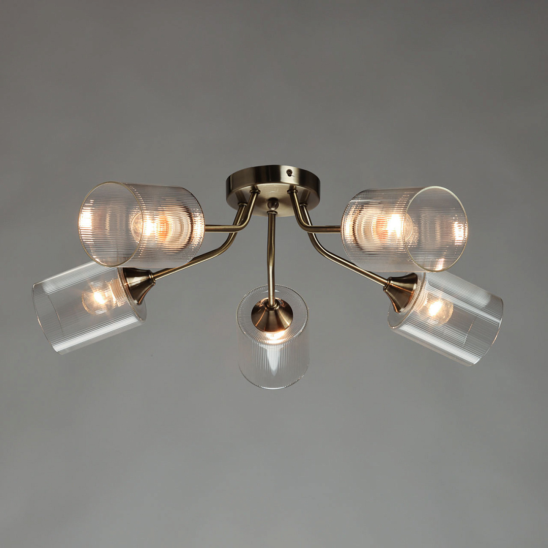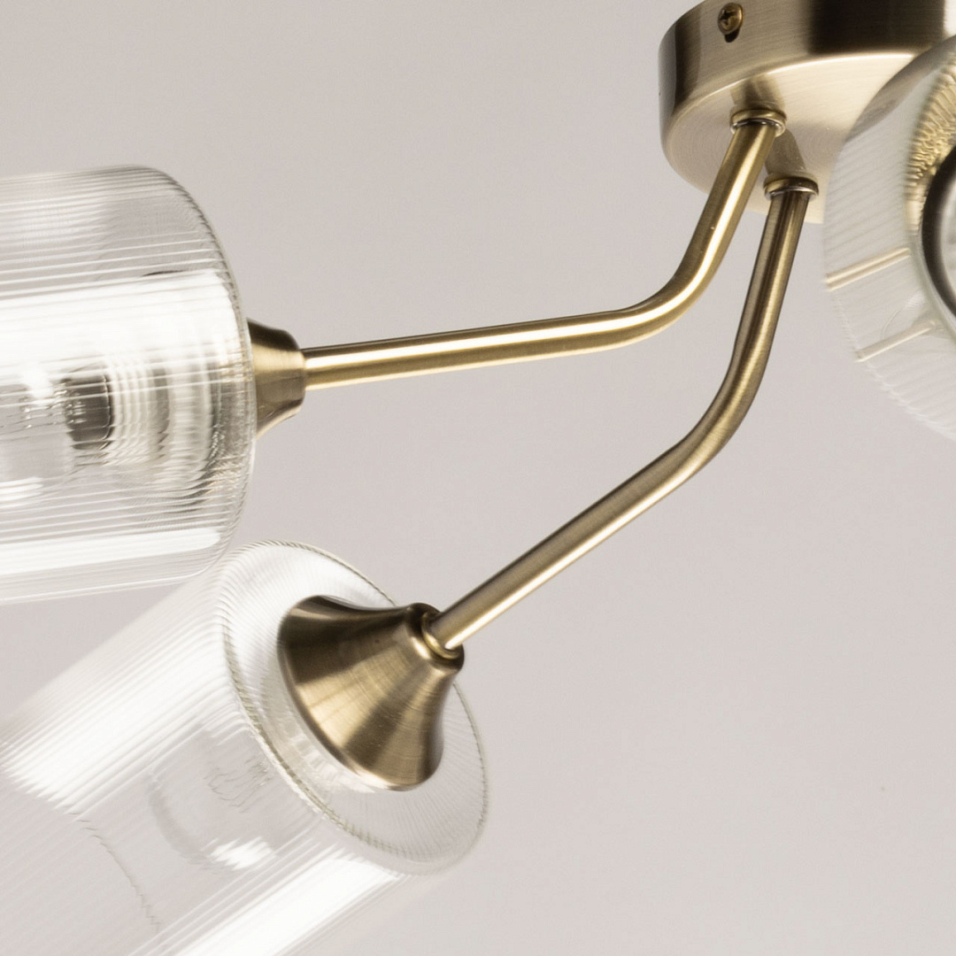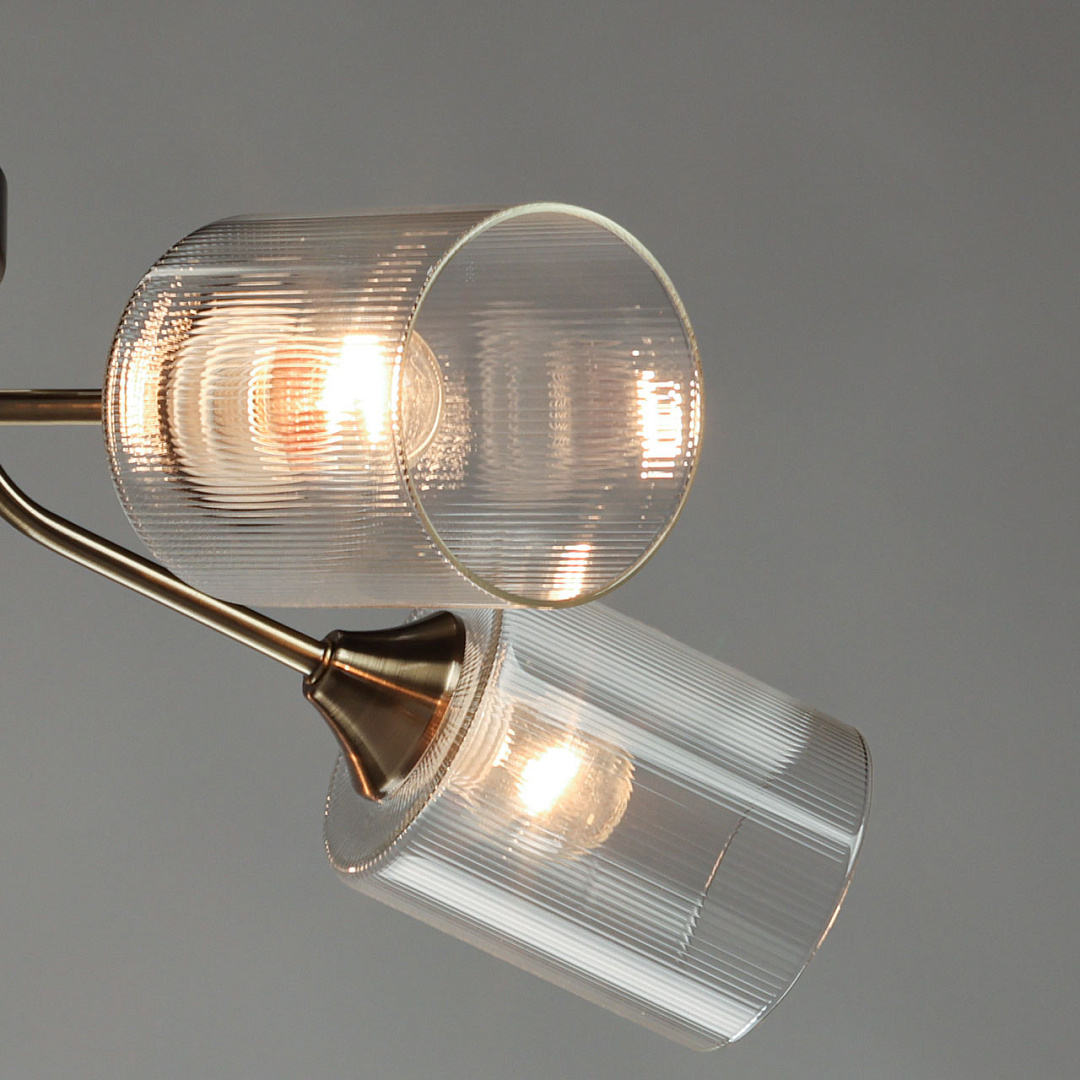 Лаконичный стиль модели - универсальное решение для интерьеров различной стилистики.Прозрачные текстурные плафоны обеспечивают яркий световой поток Компактная высота светильника идеальна для стандартной высоты потолка.Заменяемые источники света удобны в эксплуатации