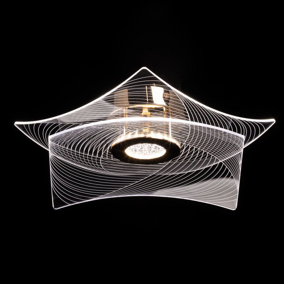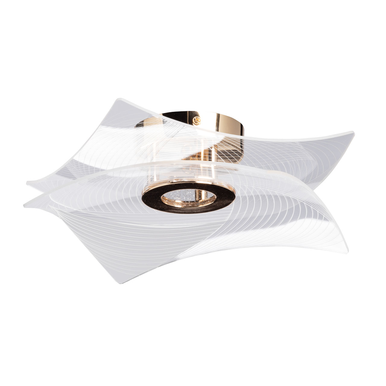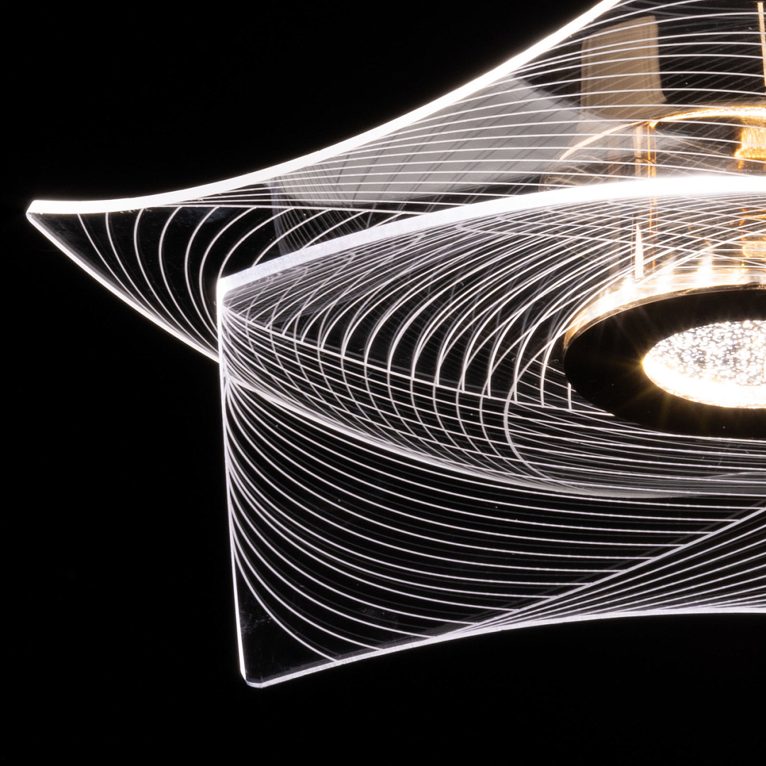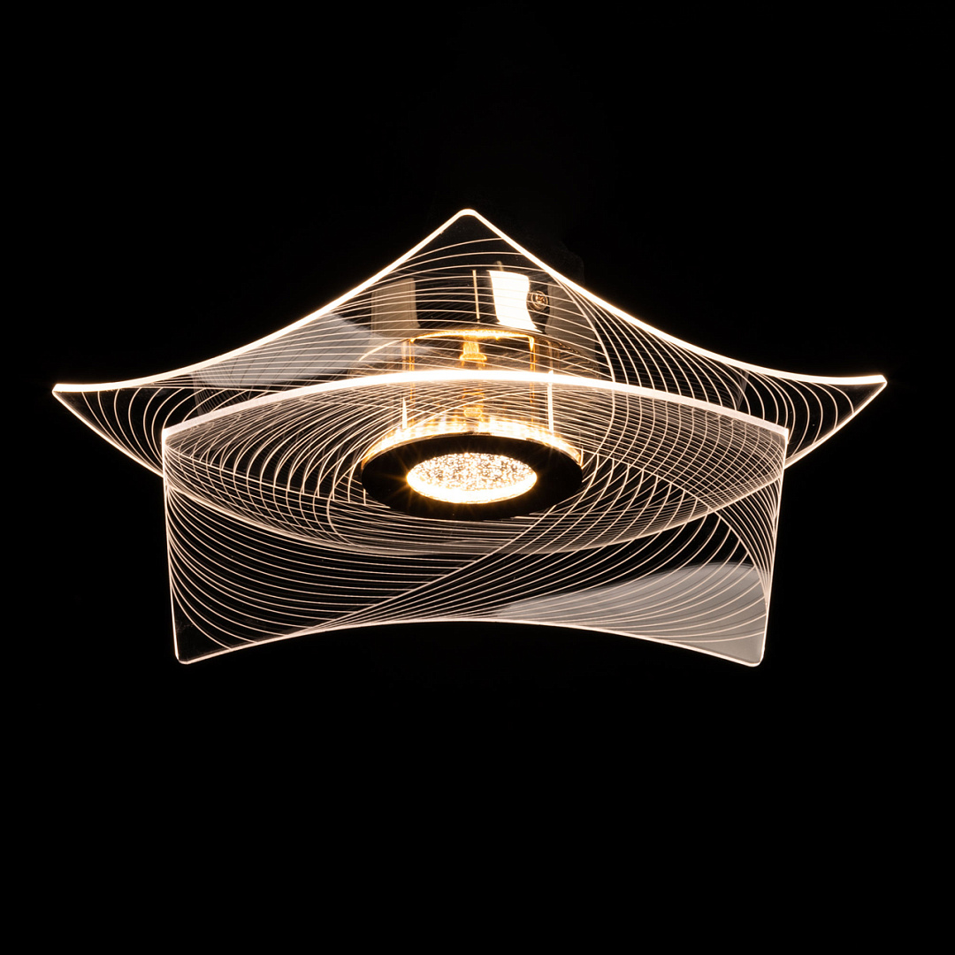 В дизайне потолочной люстры обращает на себя внимание оригинальный плафон из прозрачного акрила. Особую гармоничность светильнику придает сочетание золотого цвета и минималистичный современный дизайн. Многорежимность освещения от 3000К до 6500К позволяет подобрать комфортную температуру света через настенный выключатель. Светодиоды экономичны и безопасны. Компактный  размер потолочной люстры позволяет разместить ее в интерьере со стандартным потолком.