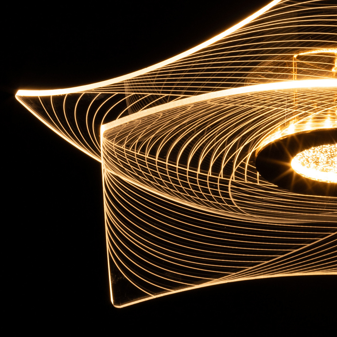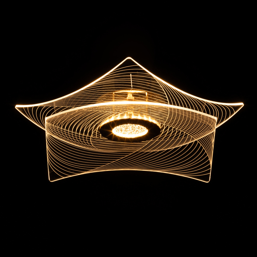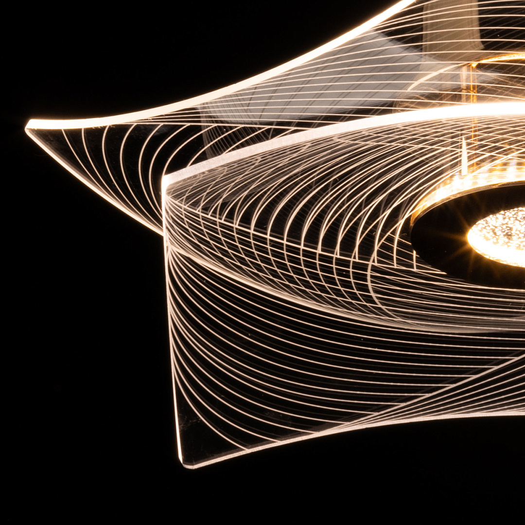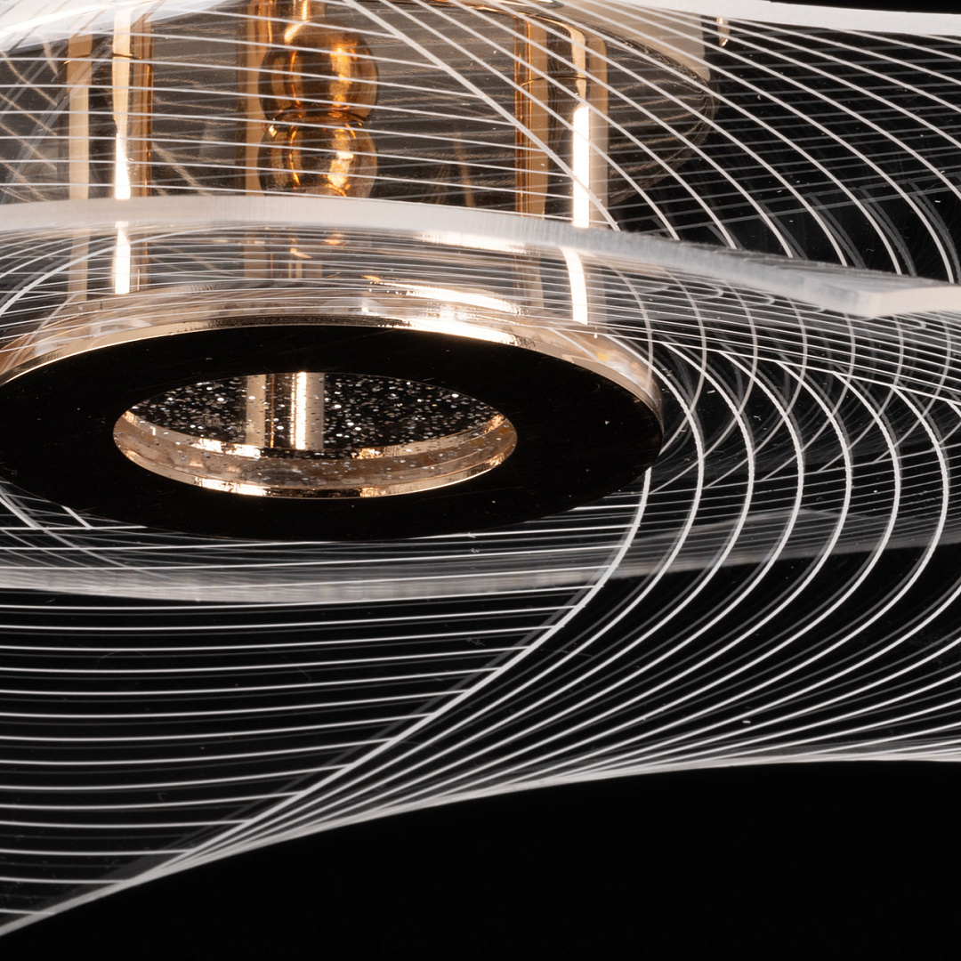 В дизайне потолочной люстры обращает на себя внимание оригинальный плафон из прозрачного акрила. Особую гармоничность светильнику придает сочетание золотого цвета и минималистичный современный дизайн. Многорежимность освещения от 3000К до 6500К позволяет подобрать комфортную температуру света через настенный выключатель. Светодиоды экономичны и безопасны. Компактный  размер потолочной люстры позволяет разместить ее в интерьере со стандартным потолком.