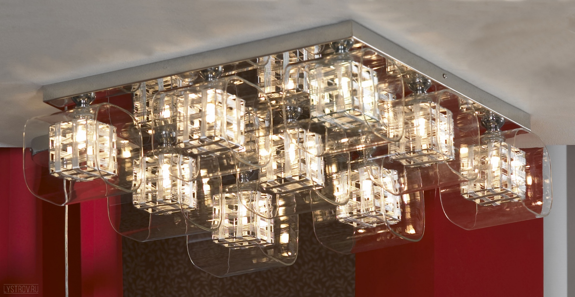 Потолочная люстра LSC-8007-09 итальянского производителя Lussole из коллекции SORSO исполнена в стиле модерн. Арматура светильника выполнена из металла цвета хром. Поверхность арматуры глянцевая. Плафон изготовлен из стекла прозрачного цвета, имеет прямоугольную объемную форму и глянцевую поверхность. Направлен вниз. Осветительный прибор рассчитан на освещение пространства площадью 18 кв. м. Тип цоколя используемых ламп G9. Производитель рекомендует использовать лампы мощностью не более 40 Вт. Суммарная мощность светильника составляет 360 Вт. Лампочки входят в комплект. Защита от попадания влаги и пыли внутрь изделия не предусмотрена. Цвет свечения теплый белый (2800K-3200K). Рекомендуем к применению в гостиной, кабинете, прихожей, спальне.
