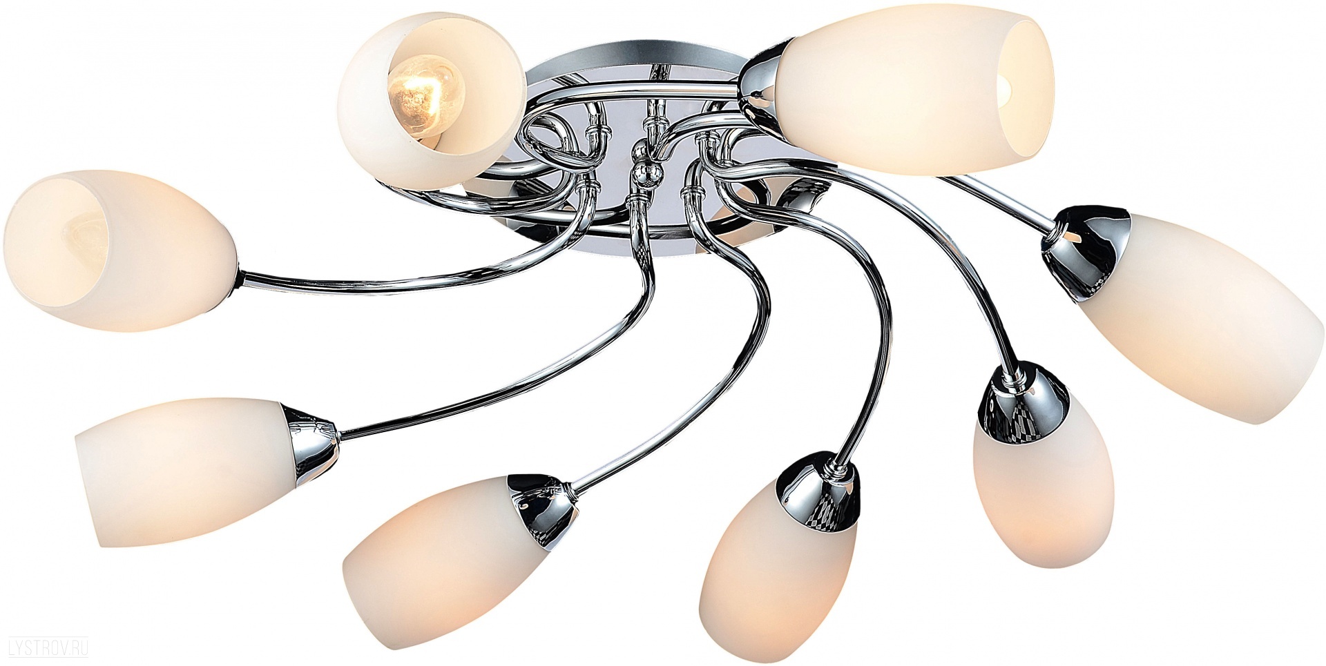 Потолочная люстра LSP-0134 итальянского производителя LGO из коллекции LSP-0133-0134 исполнена в стиле модерн. Арматура светильника выполнена из металла цвета хром. Поверхность арматуры глянцевая. Плафон изготовлен из стекла белого цвета, имеет овальную форму и матовую поверхность. Осветительный прибор рассчитан на освещение пространства площадью 16 кв. м. Тип цоколя используемых ламп E14. Производитель рекомендует использовать лампы мощностью не более 40 Вт. Суммарная мощность светильника составляет 320 Вт. Лампочки в комплект не входят. Защита от попадания влаги и пыли внутрь изделия не предусмотрена. Рекомендуем к применению в гостиной, кабинете, спальне.