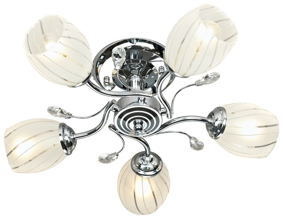 Потолочная люстра 761-107-05 итальянского производителя Velante из коллекции 761 исполнена в стиле модерн. Арматура светильника выполнена из металла цвета хром. Поверхность арматуры глянцевая. Плафон изготовлен из стекла белого цвета, имеет овальную форму и матовую поверхность. Направлен в стороны и вниз. Осветительный прибор рассчитан на освещение пространства площадью 10 кв. м. Тип цоколя используемых ламп E14. Производитель рекомендует использовать лампы мощностью не более 40 Вт. Суммарная мощность светильника составляет 200 Вт. Лампочки в комплект не входят. Защита от попадания влаги и пыли внутрь изделия не предусмотрена. Рекомендуем к применению в гостиной, кабинете, спальне.