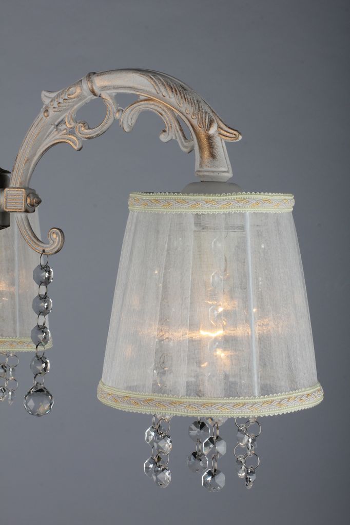 металла белого и золотого цветов. Поверхность арматуры матовая. Плафон изготовлен из текстиля белого цвета, имеет конусную форму и матовую поверхность. Направлен вниз. Осветительный прибор рассчитан на освещение пространства площадью 6 кв. м. Тип цоколя используемых ламп E14. Производитель рекомендует использовать лампы мощностью не более 40 Вт. Суммарная мощность светильника составляет 120 Вт. Лампочки в комплект не входят. Защита от попадания влаги и пыли внутрь изделия не предусмотрена. Рекомендуем к применению в гостиной, кабинете, спальне.