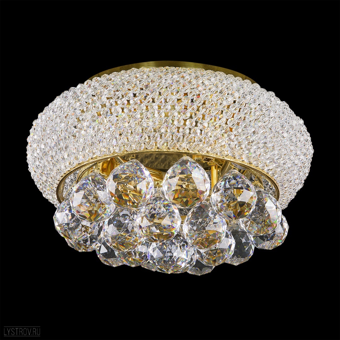 металла золотого цвета. Поверхность арматуры глянцевая. Плафон изготовлен из хрусталя прозрачного цвета. с глянцевой поверхностью. Декоративные элементы выполнены из прозрачного хрусталя. Осветительный прибор рассчитан на освещение пространства площадью 6 кв. м. Тип цоколя используемых ламп E14. Производитель рекомендует использовать лампы мощностью не более 40 Вт. Суммарная мощность светильника составляет 120 Вт. Лампочки в комплект не входят. Защита от попадания влаги и пыли внутрь изделия не предусмотрена. Рекомендуем к применению в гостиной, кабинете, спальне.
