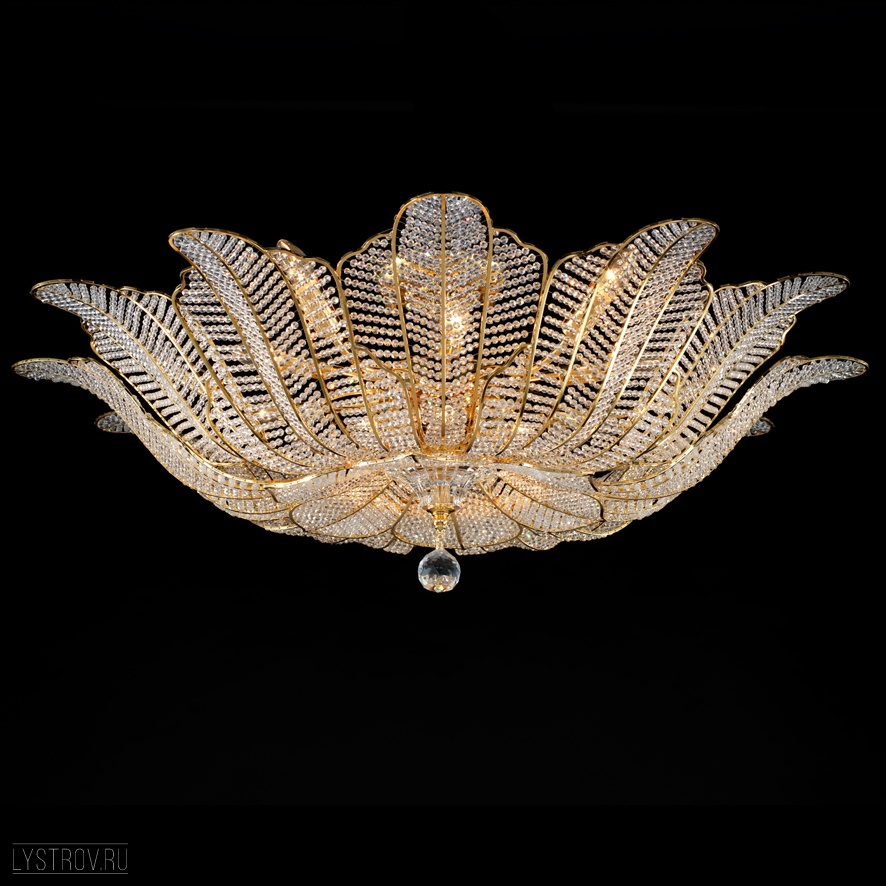 металла золотого цвета. Поверхность арматуры глянцевая. Плафон изготовлен из хрусталя прозрачного цвета. с глянцевой поверхностью. Декоративные элементы выполнены из прозрачного хрусталя. Осветительный прибор рассчитан на освещение пространства площадью 36 кв. м. Тип цоколя используемых ламп E14. Производитель рекомендует использовать лампы мощностью не более 60 Вт. Суммарная мощность светильника составляет 720 Вт. Лампочки в комплект не входят. Защита от попадания влаги и пыли внутрь изделия не предусмотрена. Рекомендуем к применению в гостиной, кабинете, спальне.