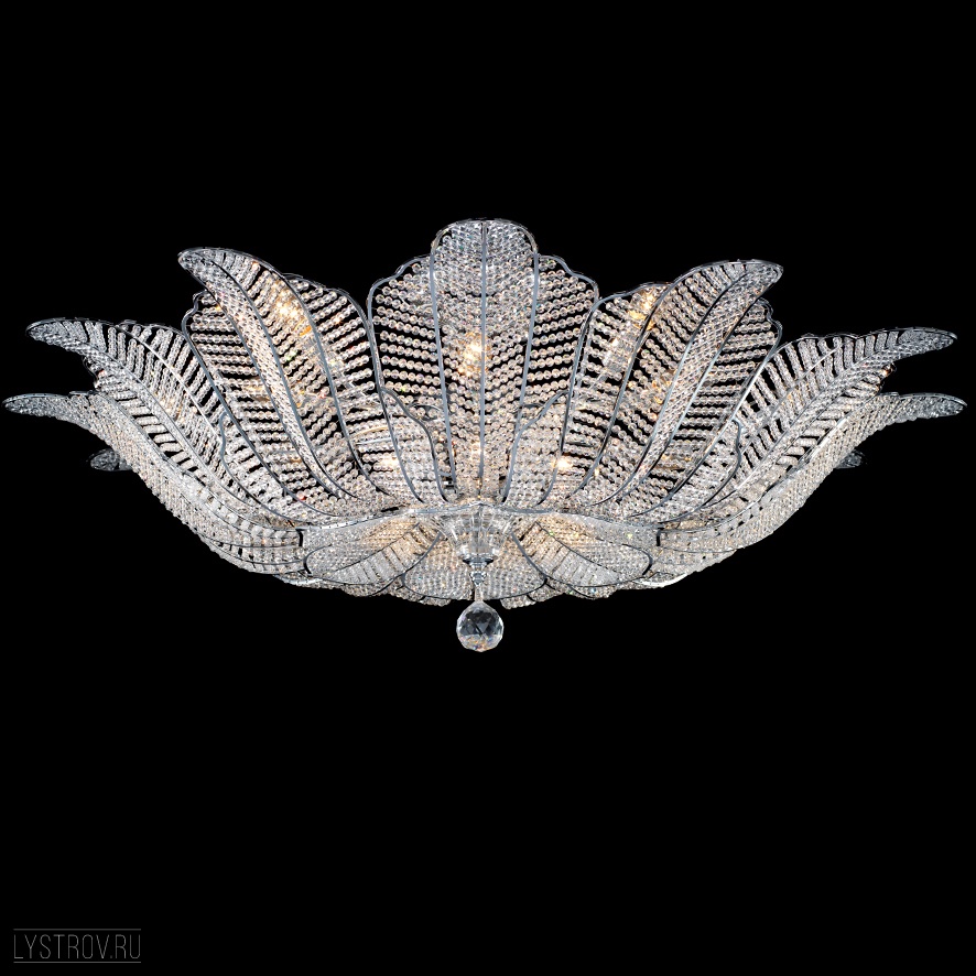 металла цвета хром. Поверхность арматуры глянцевая. Плафон изготовлен из хрусталя прозрачного цвета. с глянцевой поверхностью. Декоративные элементы выполнены из прозрачного хрусталя. Осветительный прибор рассчитан на освещение пространства площадью 36 кв. м. Тип цоколя используемых ламп E14. Производитель рекомендует использовать лампы мощностью не более 60 Вт. Суммарная мощность светильника составляет 720 Вт. Лампочки в комплект не входят. Защита от попадания влаги и пыли внутрь изделия не предусмотрена. Цвет свечения теплый белый (3000K). Рекомендуем к применению в гостиной, кабинете, спальне.