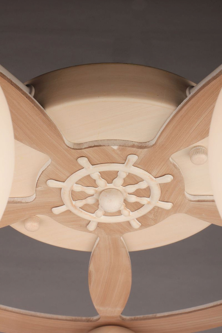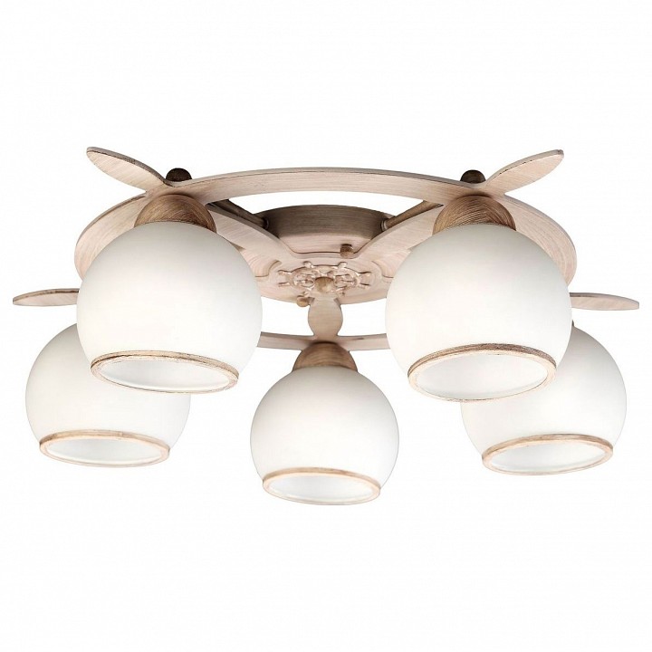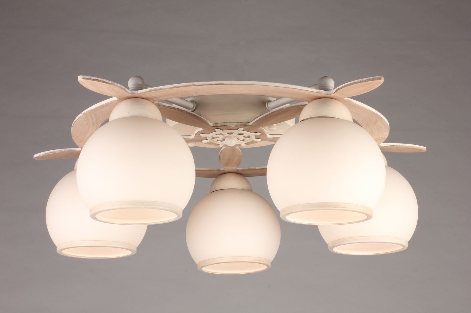 металла и дерева цвета белое дерево. Поверхность арматуры матовая. Плафон изготовлен из стекла белого цвета, имеет сферическую форму и матовую поверхность. Направлен вниз. Осветительный прибор рассчитан на освещение пространства площадью 15 кв. м. Тип цоколя используемых ламп E27. Производитель рекомендует использовать лампы мощностью не более 60 Вт. Суммарная мощность светильника составляет 300 Вт. Лампочки в комплект не входят. Защита от попадания влаги и пыли внутрь изделия не предусмотрена. Рекомендуем к применению в гостиной, кабинете, спальне.