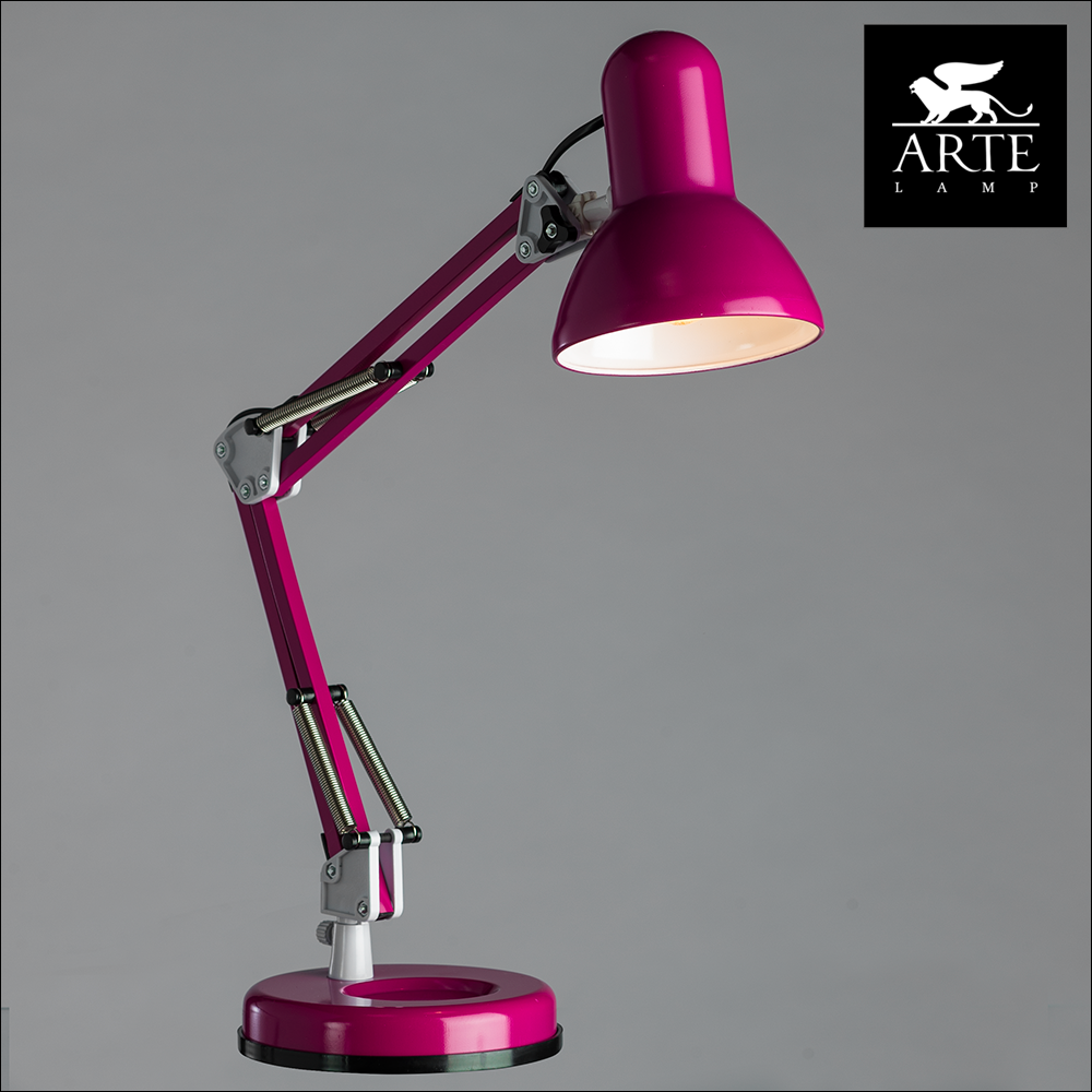 Настольная лампа A1330LT-1MG итальянского производителя Arte Lamp из коллекции JUNIOR выполнена в стиле модерн. Арматура светильника выполнена из металла фиолетового цвета. Поверхность арматуры матовая. Плафон изготовлен из металла фиолетового цвета, имеет форму колокола и матовую поверхность. Имеет направление в любую сторону. Осветительный прибор рассчитан на освещение пространства площадью 2 кв. м. Тип цоколя используемых ламп E27. Производитель рекомендует использовать лампы мощностью не более 40 Вт. Суммарная мощность светильника составляет 40 Вт. Лампочки в комплект не входят. Защита от попадания влаги и пыли внутрь изделия не предусмотрена. Имеется выключатель на проводе. Рекомендуем к применению в кабинете, офисе.