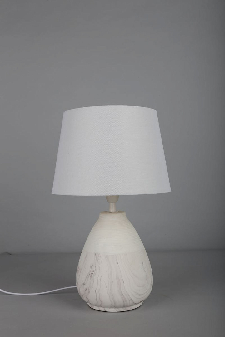 металла белого цвета. Поверхность арматуры глянцевая. Плафон изготовлен из текстиля белого цвета, имеет форму полусферы и матовую рельефную поверхность. Направлен вниз. Осветительный прибор рассчитан на освещение пространства площадью 2 кв. м. Тип цоколя используемых ламп E14. Производитель рекомендует использовать лампы мощностью не более 40 Вт. Суммарная мощность светильника составляет 40 Вт. Лампочки в комплект не входят. Защита от попадания влаги и пыли внутрь изделия не предусмотрена. Имеется выключатель на проводе. Рекомендуем к применению в гостиной, кабинете, спальне.