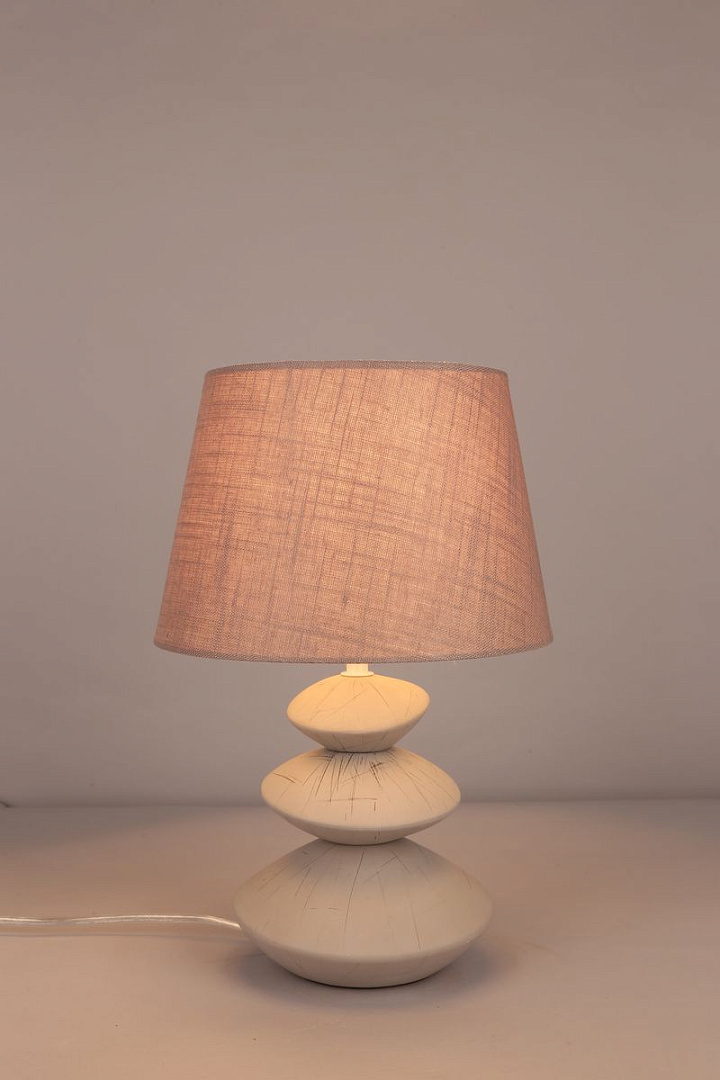 металла белого цвета. Поверхность арматуры матовая. Плафон изготовлен из текстиля темно-бежевого цвета, имеет конусную форму и матовую поверхность. Направлен вверх и вниз. Осветительный прибор рассчитан на освещение пространства площадью 3 кв. м. Тип цоколя используемых ламп E27. Производитель рекомендует использовать лампы мощностью не более 60 Вт. Суммарная мощность светильника составляет 60 Вт. Лампочки в комплект не входят. Защита от попадания влаги и пыли внутрь изделия не предусмотрена. Имеется выключатель на проводе. Рекомендуем к применению в гостиной, кабинете, спальне.