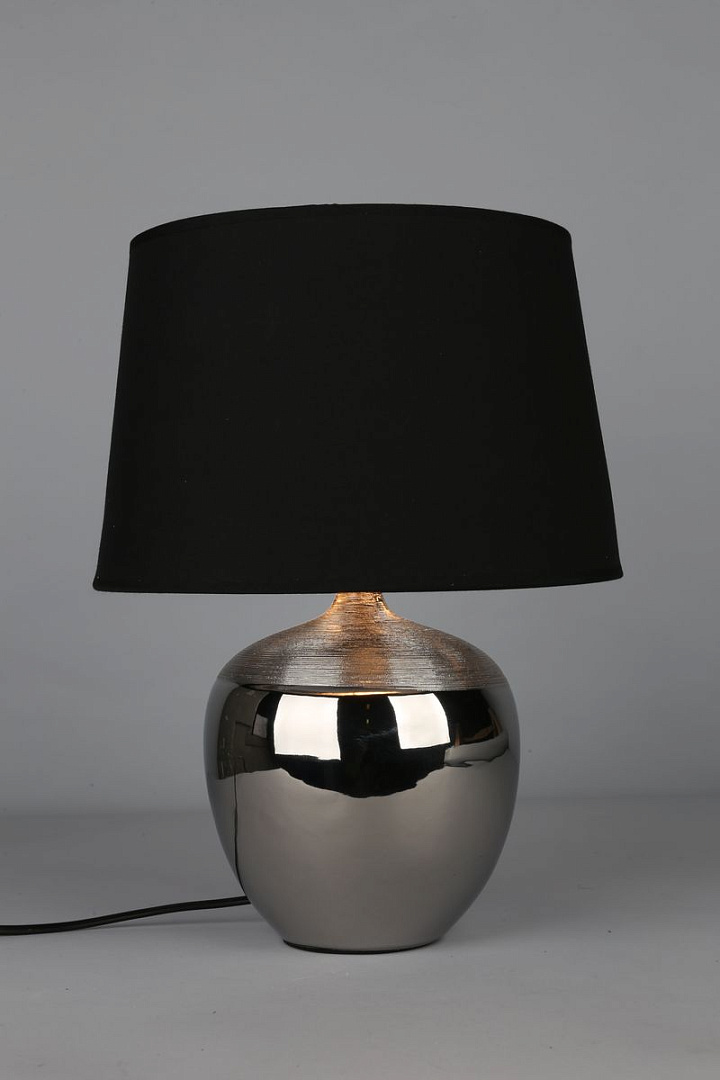 металла серебристого цвета. Поверхность арматуры матовая. Плафон изготовлен из текстиля черного цвета, имеет конусную форму и матовую поверхность. Направлен вверх и вниз. Осветительный прибор рассчитан на освещение пространства площадью 3 кв. м. Тип цоколя используемых ламп E27. Производитель рекомендует использовать лампы мощностью не более 60 Вт. Суммарная мощность светильника составляет 60 Вт. Лампочки в комплект не входят. Защита от попадания влаги и пыли внутрь изделия не предусмотрена. Имеется выключатель на проводе. Рекомендуем к применению в гостиной, кабинете, спальне.