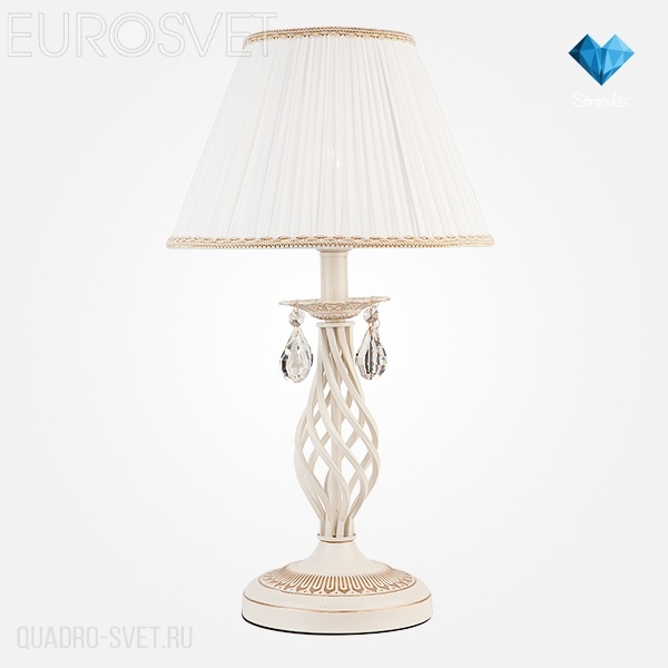 Настольная лампа 10054/1 белый с золотом/прозрачный хрусталь Strotskis от производителя Eurosvet (КНР) из коллекции Amelia исполнена в классическом стиле. Арматура светильника выполнена из