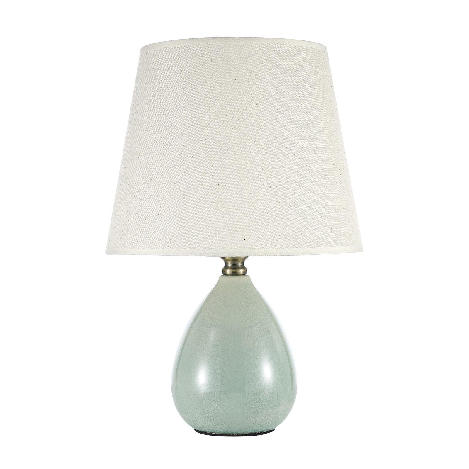 керамики зеленого цвета. Поверхность арматуры матовая. Плафон изготовлен из текстиля белого цвета, имеет конусную форму и матовую поверхность. Направлен вверх и вниз. Осветительный прибор рассчитан на освещение пространства площадью 3 кв. м. Тип цоколя используемых ламп E27. Производитель рекомендует использовать лампы мощностью не более 60 Вт. Суммарная мощность светильника составляет 60 Вт. Лампочки в комплект не входят. Защита от попадания влаги и пыли внутрь изделия не предусмотрена. Имеется выключатель на проводе. Рекомендуем к применению в гостиной, кабинете, спальне.