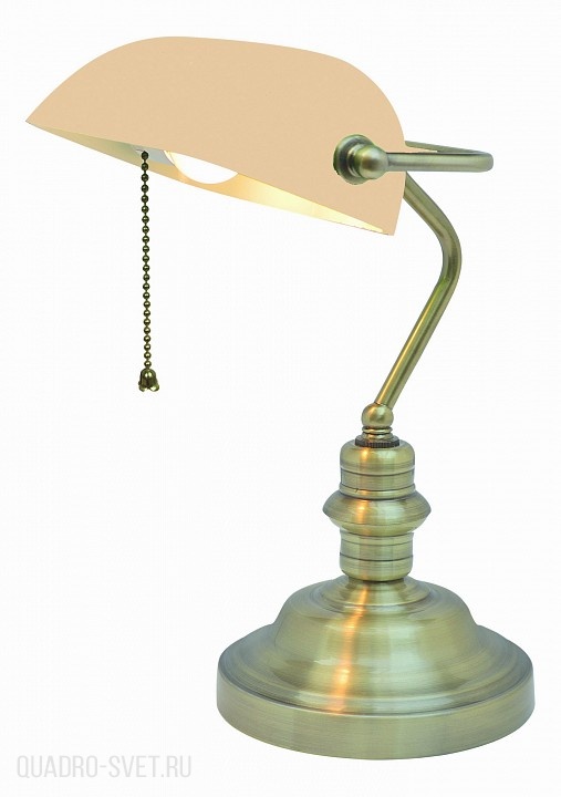 Настольная лампа A2493LT-1AB итальянского производителя Arte Lamp из коллекции Banker выполнена в стиле классика. Арматура светильника выполнена из металла бронзового цвета. Поверхность арматуры глянцевая. Плафон изготовлен из стекла белого цвета, имеет овальную выпуклую форму и глянцевую поверхность. Имеет направление в любую сторону. Осветительный прибор рассчитан на освещение пространства площадью 3 кв. м. Тип цоколя используемых ламп E27. Производитель рекомендует использовать лампы мощностью не более 60 Вт. Суммарная мощность светильника составляет 60 Вт. Лампочки в комплект не входят. Защита от попадания влаги и пыли внутрь изделия не предусмотрена. Имеется шнуровой выключатель. Рекомендуем к применению в кабинете, офисе.