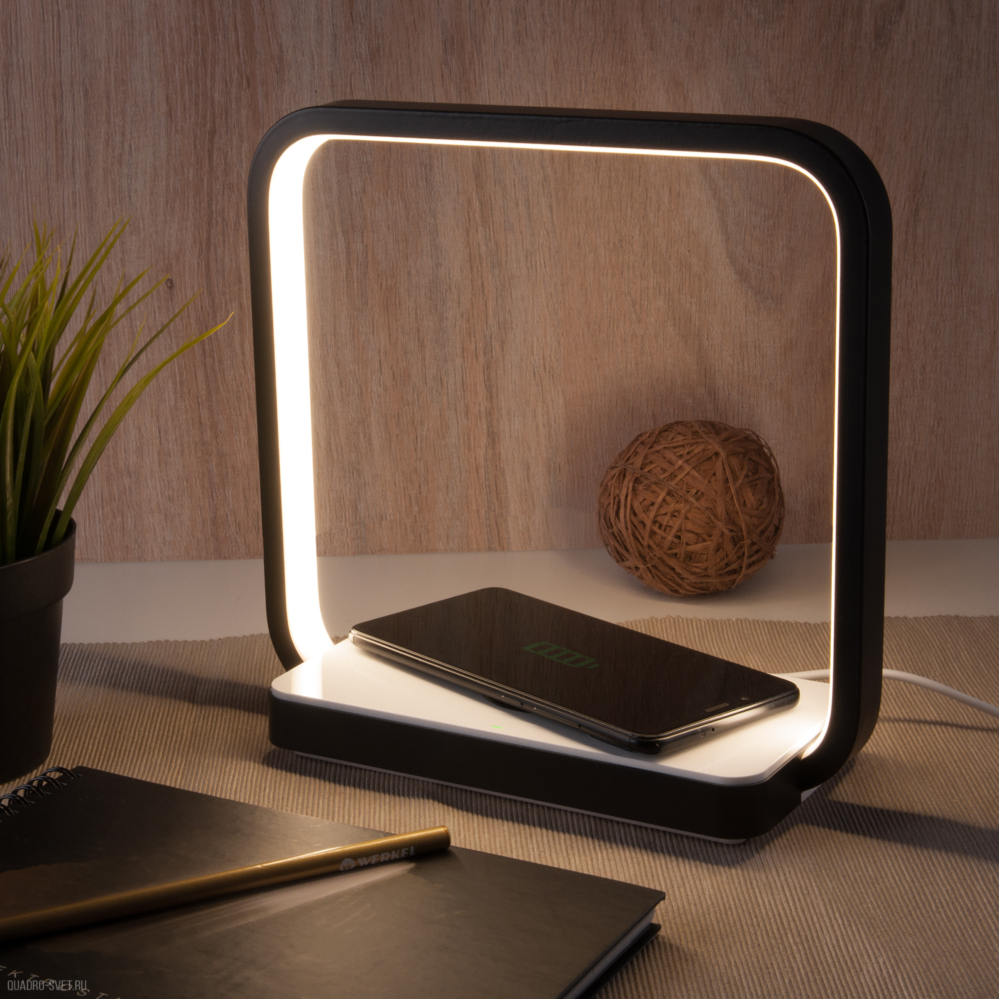 Оставить свой отзыв о товаре Светодиодная настольная лампа с беспроводной зарядкой QI Eurosvet Frame 80502/1 черный