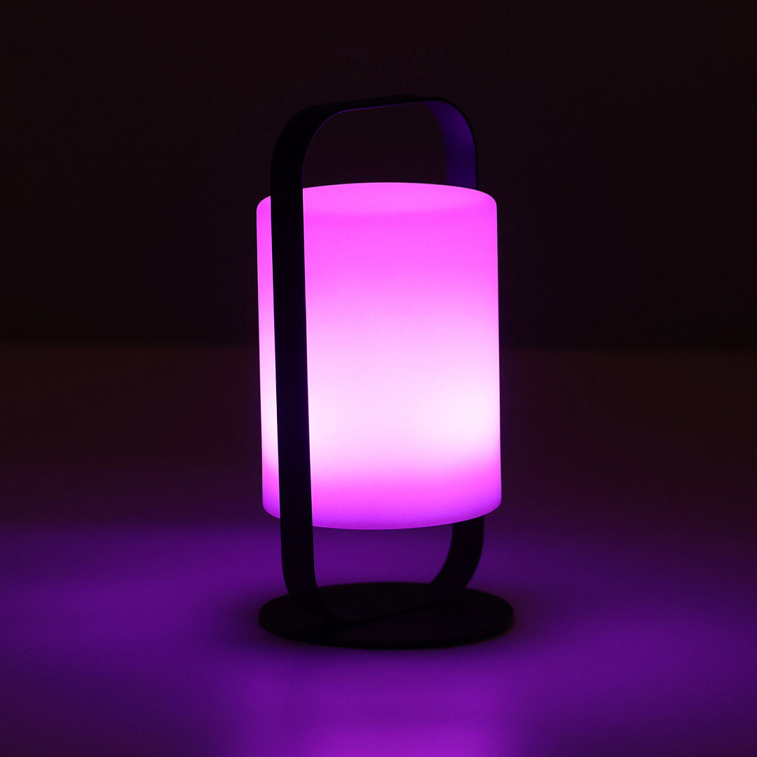 Наличие аккумулятора и удобного держателя позволяет свободно перемещать настольную лампу, не ориентируясь на розетки.Благодаря функции RGB, настольная лампа создает уютную обстановку, наполненную позитивными эмоциями  и украшает пространство комнаты.Высокая IP44 защита и универсальный материал позволяют использовать настольную лампу для ландшафтного освещения, тем самым придав определённый шарм украшения всей ландшафтной композиции.С помощью многорежимного пульта дистанционного управления можно задавать ритмичность перехода цветов и их яркость. Наличие USB-порта делает эту настольную лампу удобной во всех ситуациях.