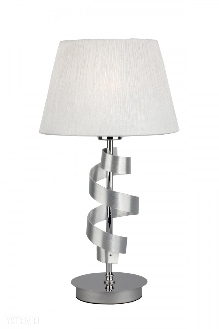 металла цвета хром. Поверхность арматуры глянцевая. Плафон изготовлен из текстиля белого цвета, имеет конусную форму и матовую рельефную поверхность. Направлен вверх и вниз. Осветительный прибор рассчитан на освещение пространства площадью 3 кв. м. Тип цоколя используемых ламп E27. Производитель рекомендует использовать лампы мощностью не более 60 Вт. Суммарная мощность светильника составляет 60 Вт. Лампочки в комплект не входят. Защита от попадания влаги и пыли внутрь изделия не предусмотрена. Имеется диммер. Рекомендуем к применению в гостиной, кабинете, спальне.