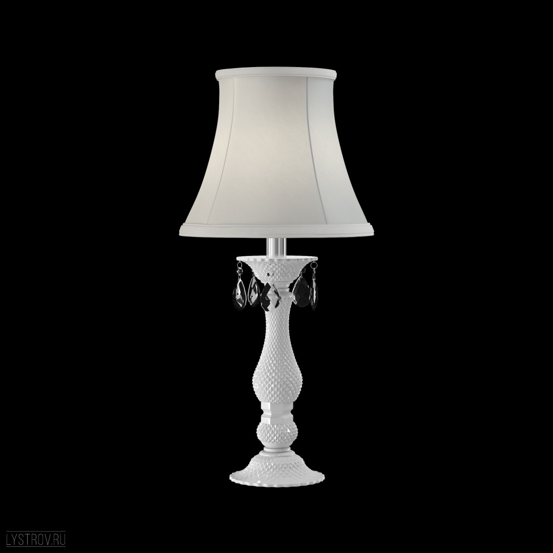 металла и акрила цветов хром и белый. Поверхность арматуры глянцевая и рельефная. Плафон изготовлен из текстиля белого цвета, имеет конусную форму и матовую поверхность. Направлен вверх. Декоративные элементы выполнены из прозрачного хрусталя. Осветительный прибор рассчитан на освещение пространства площадью 2 кв. м. Тип цоколя используемых ламп E27. Производитель рекомендует использовать лампы мощностью не более 40 Вт. Суммарная мощность светильника составляет 40 Вт. Лампочки в комплект не входят. Защита от попадания влаги и пыли внутрь изделия не предусмотрена. Имеется выключатель на проводе. Рекомендуем к применению в гостиной, кабинете, спальне.