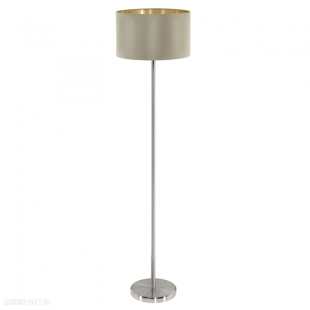 Торшер MASERLO с ножн. выкл., 1х60W (E27), Ø380, H1510, никель матовый/текстиль, серо-коричневый, золотой