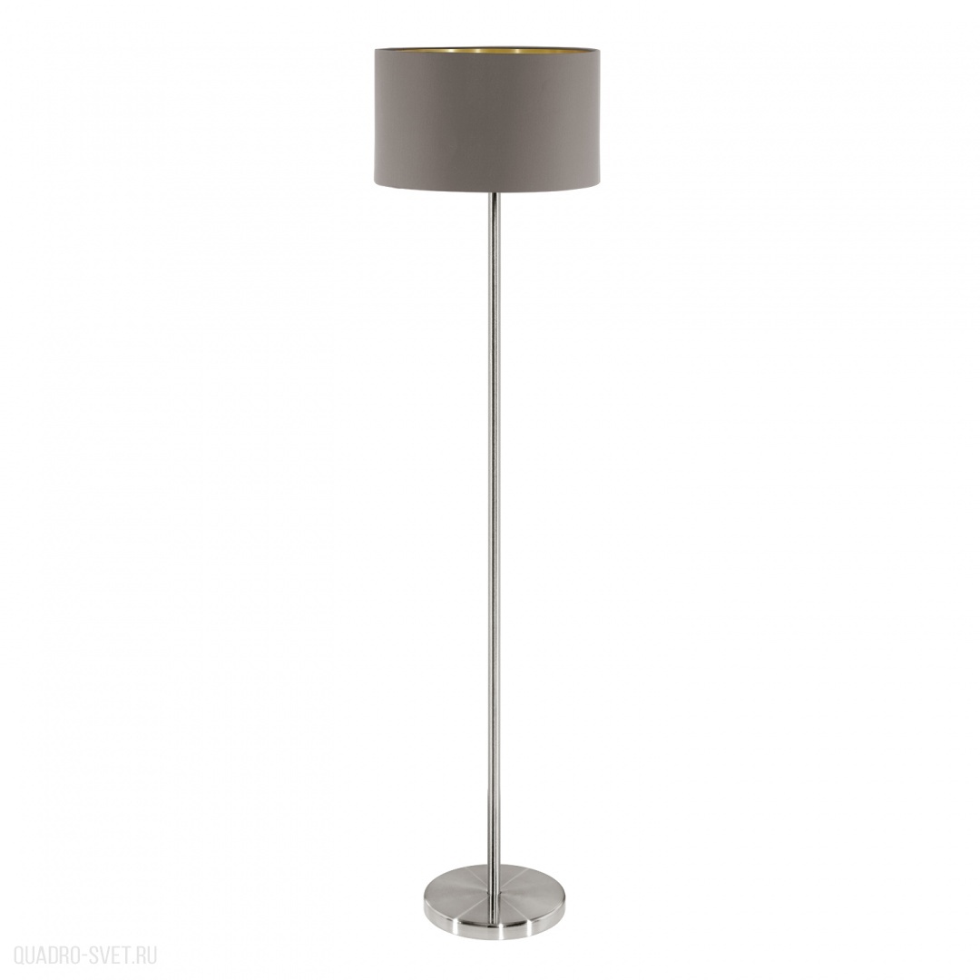 Торшер MASERLO с ножн.выкл., 1х60W (E27), Ø380, H1510, никель матовый/текстиль, каппучино, золотой