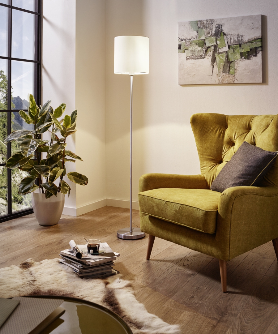 Торшер PASTERI, 1х60W (E27), Ø280, H1575, никель матовый/текстиль, белый