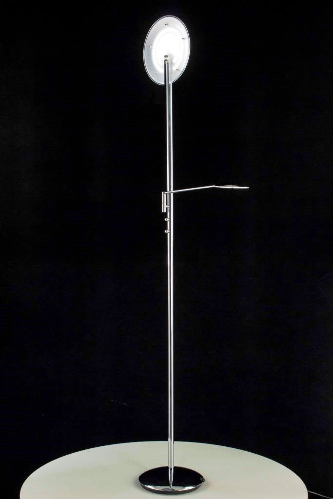 Светодиодный торшер CL802001 датского производителя CITILUX из коллекции Дискус выполнен в современном стиле. Арматура светильника выполнена из металла цвета хром. Поверхность арматуры глянцевая. Плафон изготовлен из металла и стекла цвета хром, имеет круглую плоскую форму и глянцевую поверхность. Направлен вниз. Осветительный прибор рассчитан на освещение пространства площадью 10 кв. м. Тип цоколя используемых ламп LED (Встроенный светодиодный модуль). Производитель рекомендует использовать лампы мощностью не более 1 Вт. Суммарная мощность светильника составляет 23 Вт. Лампочки входят в комплект. Защита от попадания влаги и пыли внутрь изделия не предусмотрена. Имеется 2 диммера. Рекомендуем к применению в гостиной, кабинете, спальне.