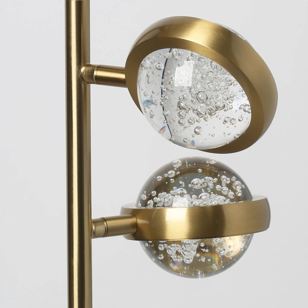 Цвет медовой бронзы притягивает к себе внимание. Сфера из прозрачного стекла с пузырьками красиво преломляет свет.Инновационный источник света актуален.Полная семья решает задачи общего и зонального освещения.