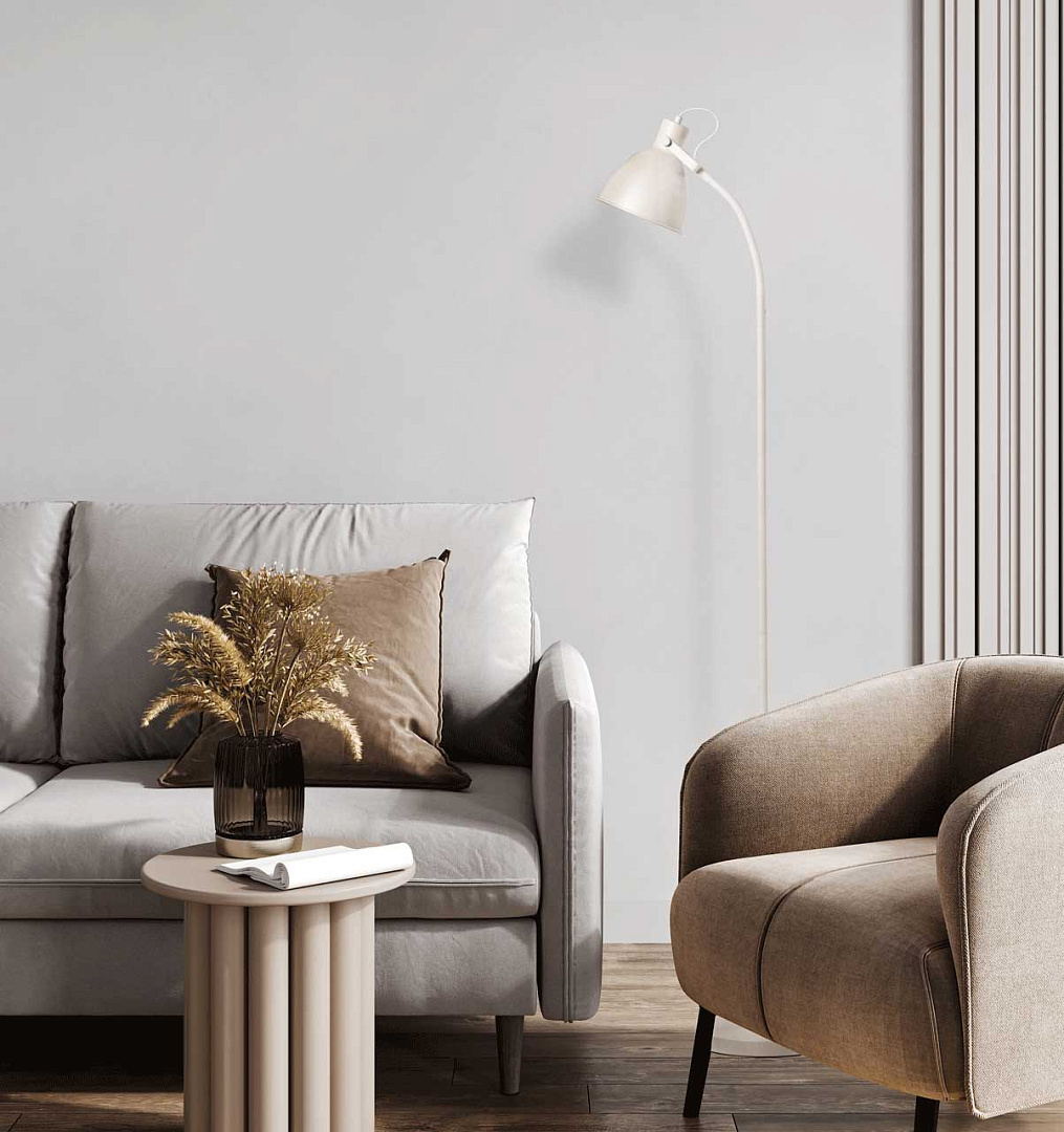 Минималистичный дизайн торшера подходит для современных интерьеров. Белый цвет торшера универсально подходит для интерьера в любом цветовом решении. Качественные светодиоды экономичны и безопасны. Направленный свет позволяет хорошо осветить рабочую поверхность. Изменение угла наклона плафона позволяет менять направление светового луча.