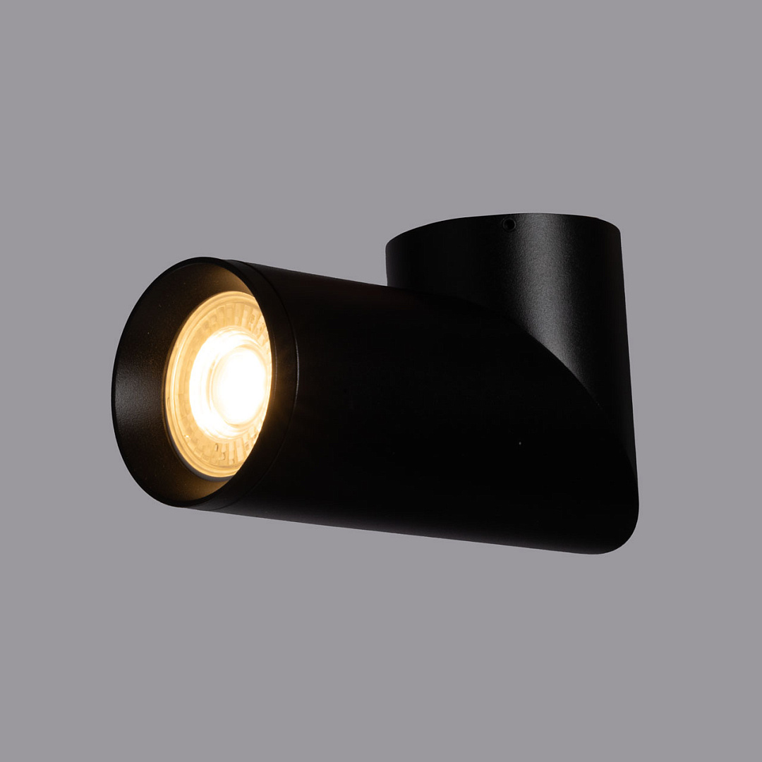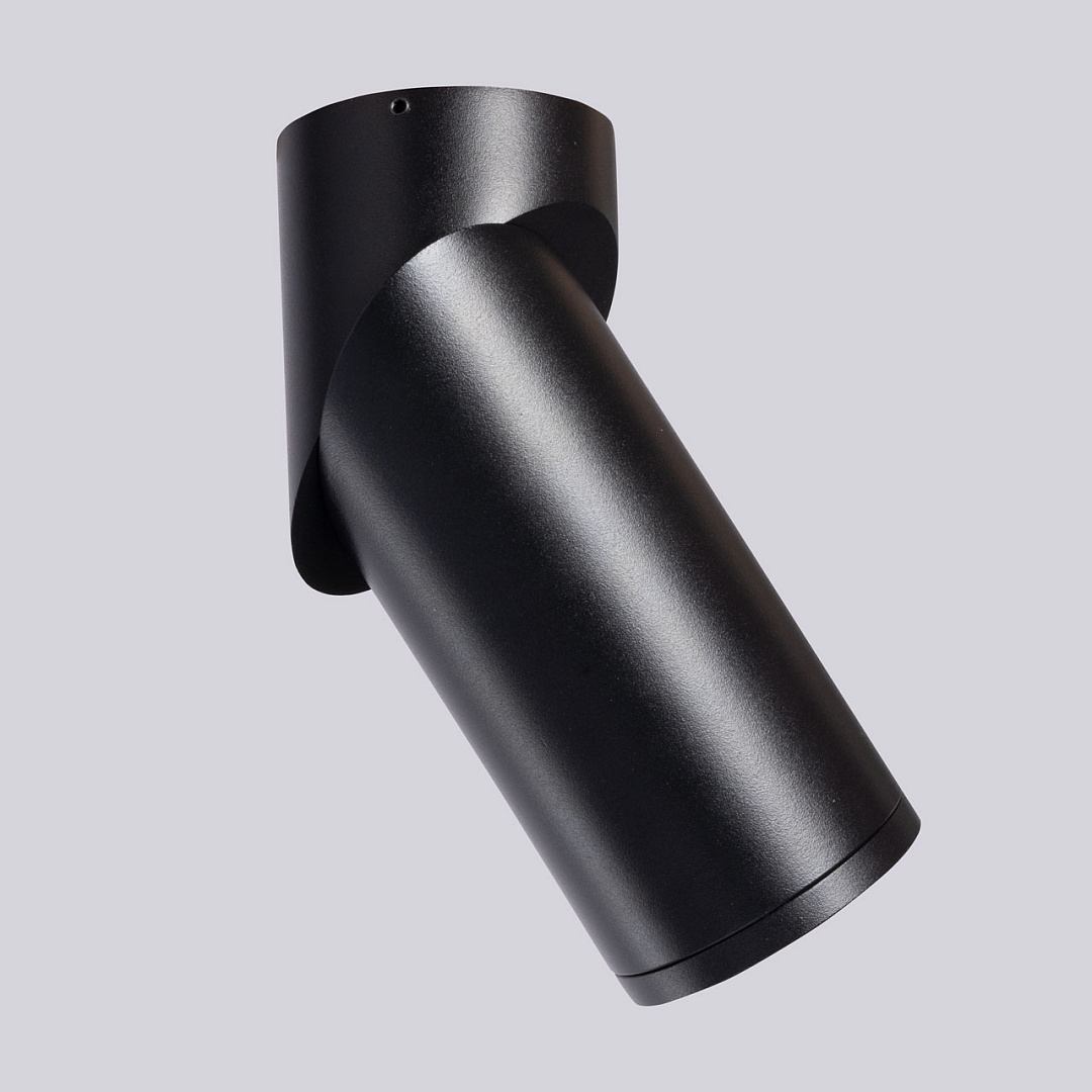 Минималистичный современный дизайн. Контрастный черный цвет делает светильник акцентом на потолке. Поворотный плафон позволяет направлять световой поток в нужную сторону, что создает комфортное освещение. Заменяемый источник света удобен в эксплуатации.