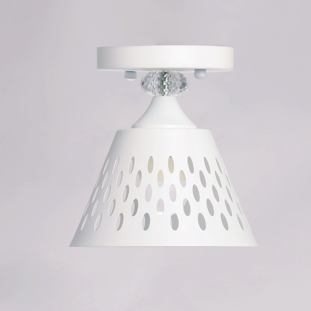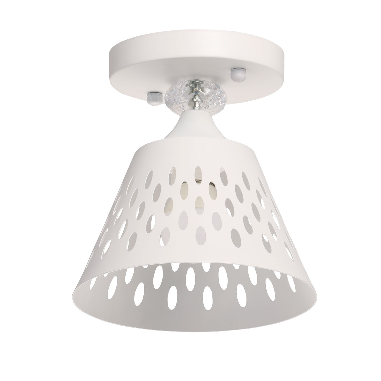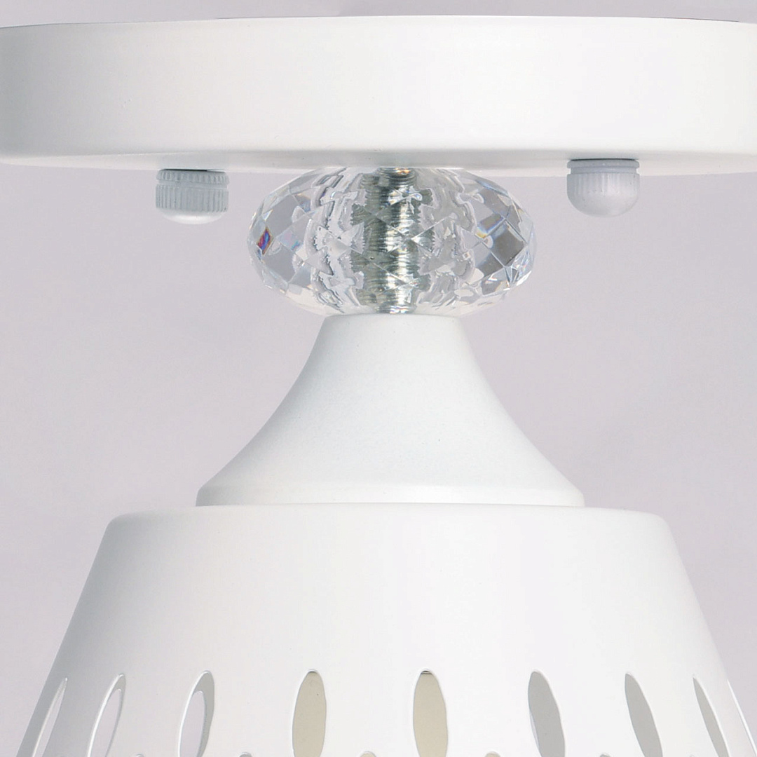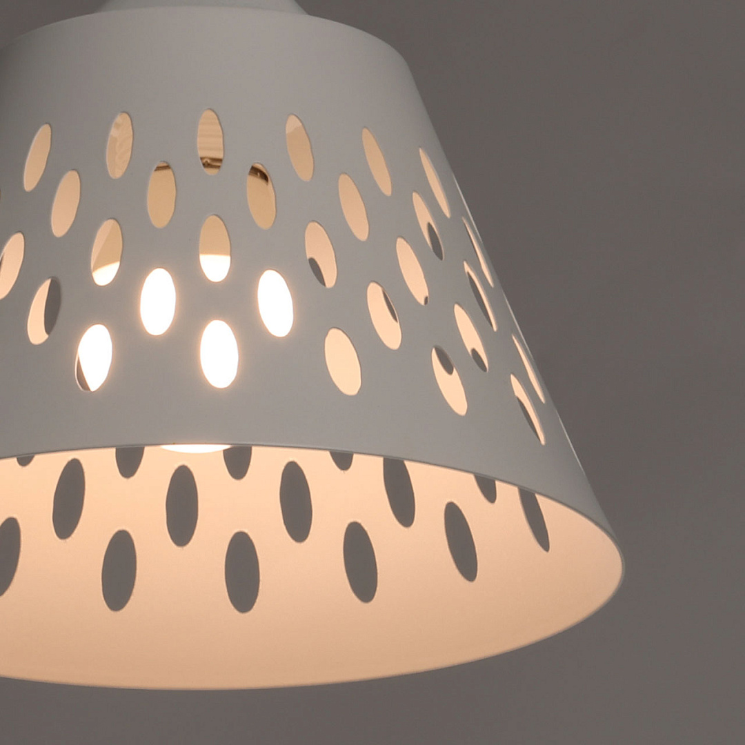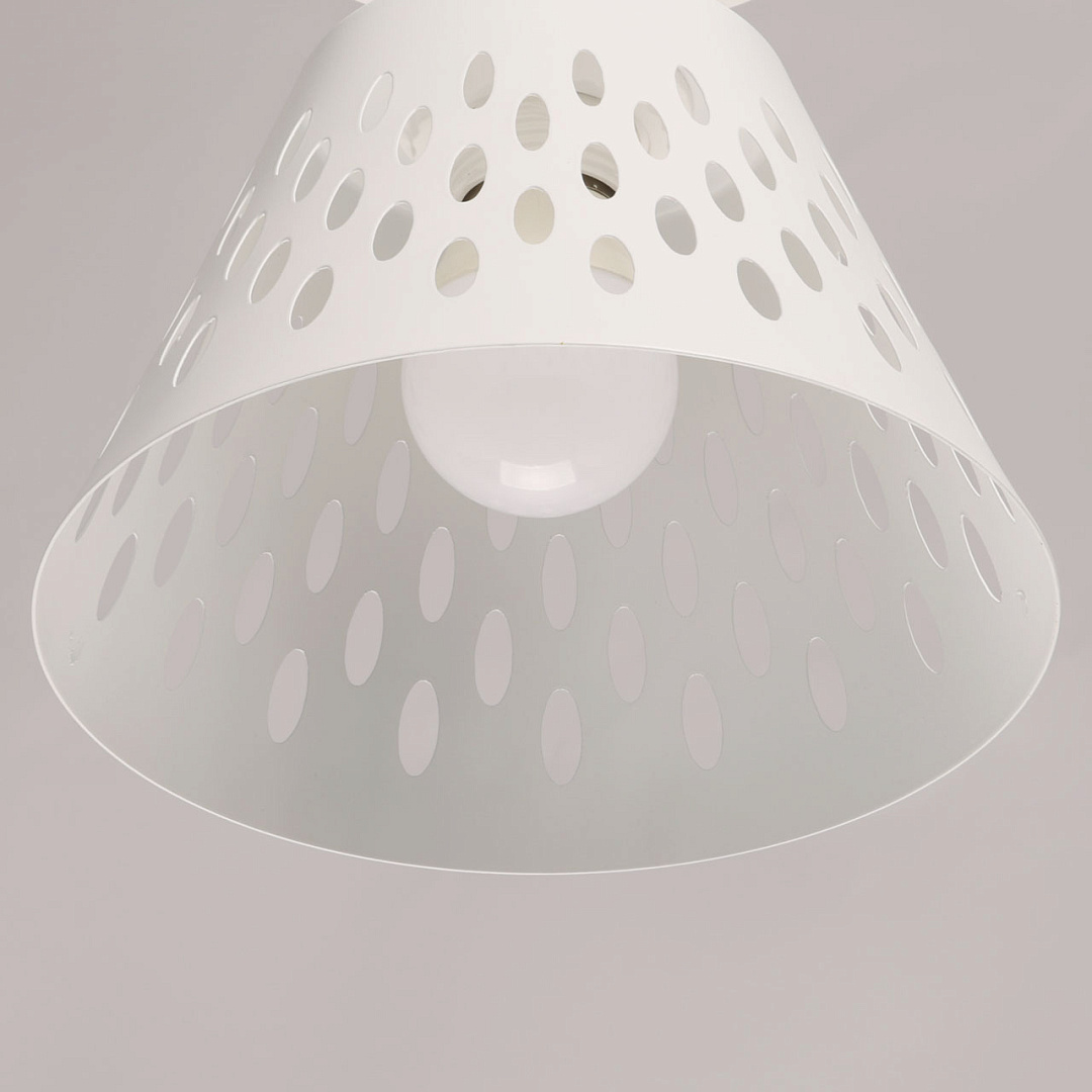 Актуальная стилистика лофта. Компактная высота светильника идеальна для стандартной высоты потолка. Белый цвет универсально подойдет к любому интерьеру. Ажурный металлический плафон создает красивую световую тень. Заменяемый источник света удобен в эксплуатации.