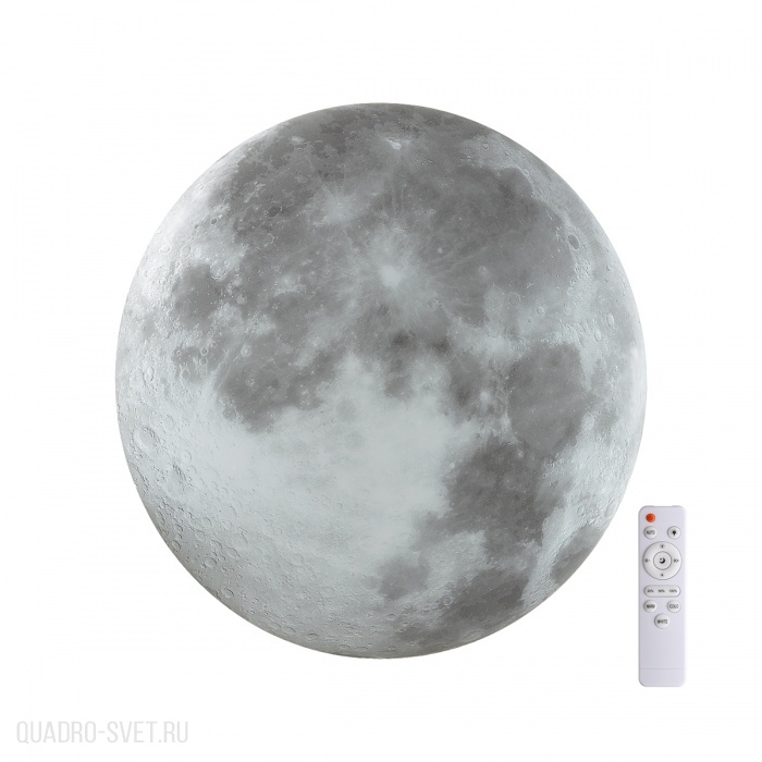 Светильник 3084/EL линии MON состоит из металлического основания (базы) и пластикового рассеивателя. Материал рассеивателя - высококачественный пластик марки PMMA 2.0 с глянцевой поверхностью, без текстуры. На плафон нанесена полноцветная печать - рисунок поверхности Луны. Форма плафона: круглая, декорирована съемным ободом из пластика черного цвета. Степень защиты IP43 позволяет использовать светильник в определенных зонах влажных помещений. В комплект входит заменяемый LED модуль с линзами, мощностью 72Вт, которая соответствует лампе накаливания 520Вт. А также пульт ДУ, с помощью которого осуществляется плавное изменение цветовой температуры 3000-6000К, изменение яркости, переход в режим переключения теплого/белого/холодного/ночного света. Светильник имеет функцию "память".