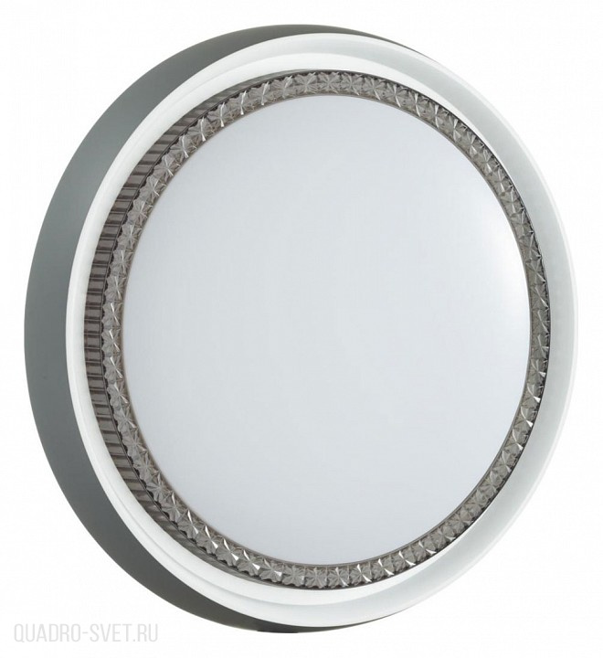 Светильник 7644/DL линии  RAHIG состоит из металлического основания (базы) и пластикового рассеивателя. Материал рассеивателя - высококачественный пластик марки PMMA 2.0 белого цвета с матовой поверхностью. Пластик обеспечивает светильнику равномерное рассеивание и хорошее светопропускание. Материал обода - пластик серого цвета с внешней стороны, белого цвета с внутренней стороны.Форма плафона: круглая, декорирована вставкой"под хрусталь" из прозрачного пластика дымчатого цвета. Степень защиты IP43 позволяет использовать светильник в определенных зонах влажных помещений. В комплект входит заменяемый LED модуль с линзами, мощностью 70Вт, которая соответствует лампе накаливания 610Вт. А также пульт ДУ (с креплением на стену), с помощью которого осуществляется плавное изменение цветовой температуры 3000-6000К, изменение яркости, переход в режим переключения теплого/белого/холодного/ночного света. Светильник имеет функцию "память".