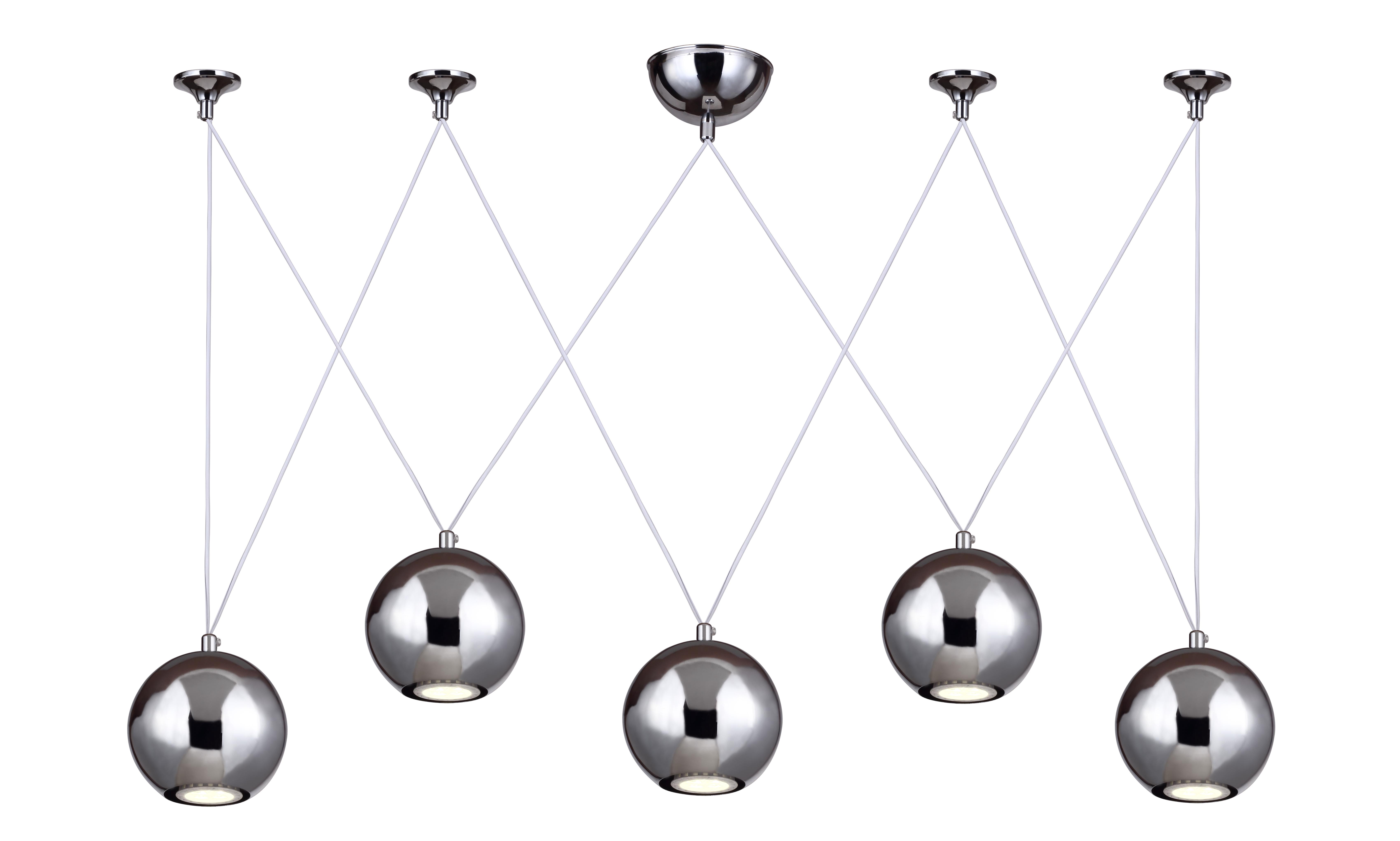 Подвесной светильник 1598-5P производства Favourite (Германия) из коллекции Giallo выполнен в современном стиле. Арматура светильника выполнена из металла цвета хром. Поверхность арматуры глянцевая. Плафон изготовлен из металла цвета хром, имеет сферическую форму и глянцевую поверхность. Направлен вниз. Осветительный прибор рассчитан на освещение пространства площадью 1 кв. м. Тип цоколя используемых ламп GU10. Производитель рекомендует использовать лампы мощностью не более 4 Вт. Суммарная мощность светильника составляет 20 Вт. Лампочки входят в комплект. Защита от попадания влаги и пыли внутрь изделия не предусмотрена. Рекомендуем к применению в гостиной, кабинете, прихожей, спальне.