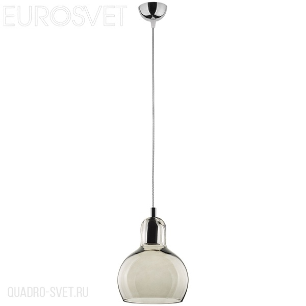 металла цвета хром. Поверхность арматуры матовая. Плафон изготовлен из стекла серого цвета, имеет конусную форму и матовую поверхность. Направлен вниз. Осветительный прибор рассчитан на освещение пространства площадью 5 кв. м. Тип цоколя используемых ламп E27. Производитель рекомендует использовать лампы мощностью не более 60 Вт. Суммарная мощность светильника составляет 60 Вт. Лампочки в комплект не входят. Защита от попадания влаги и пыли внутрь изделия не предусмотрена. Рекомендуем к применению в гостиной, кабинете, кухне, прихожей, спальне.