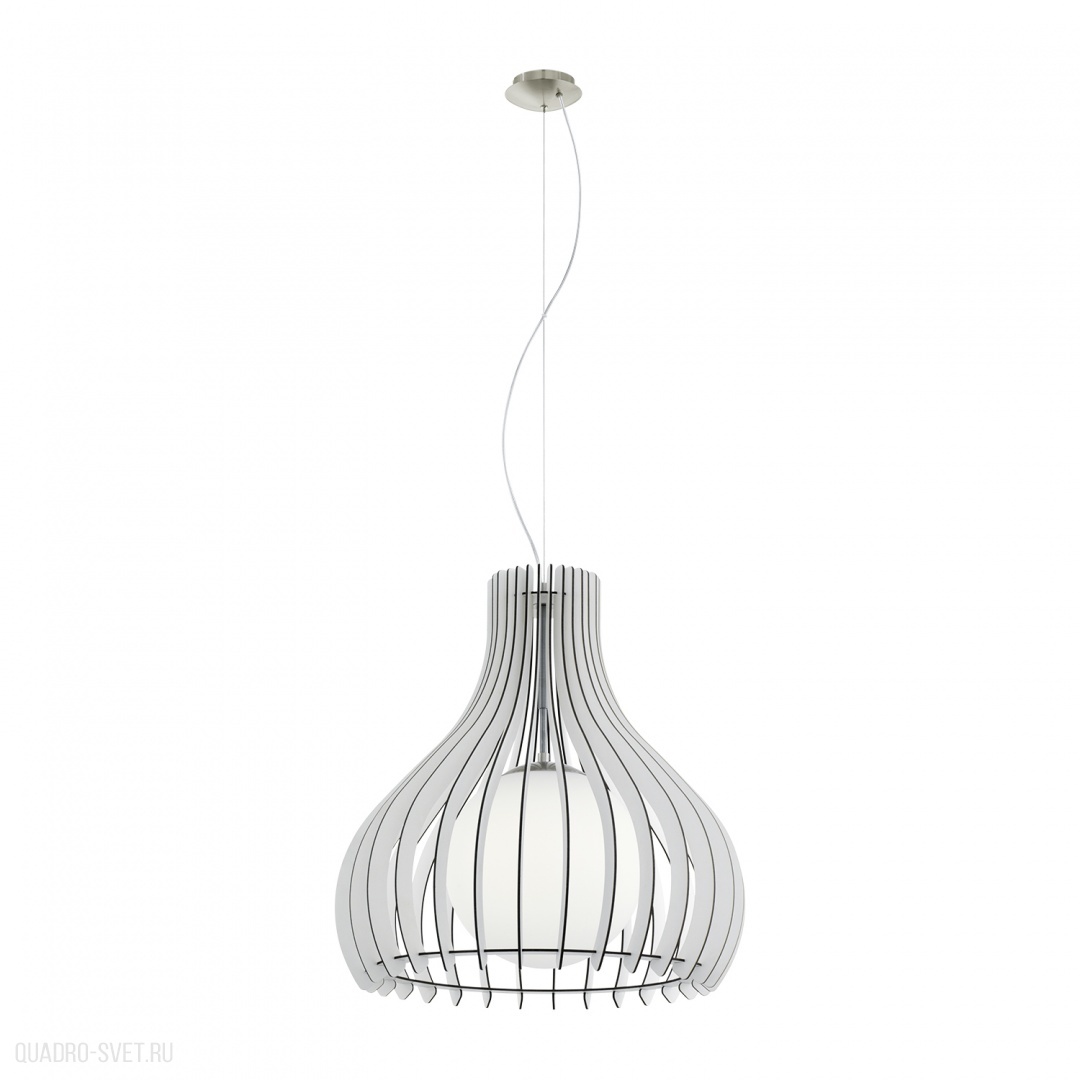 Подвес TINDORI, 1х60W(E27), Ø500, H2000, сталь, никель мат./дерево, стекло, белый