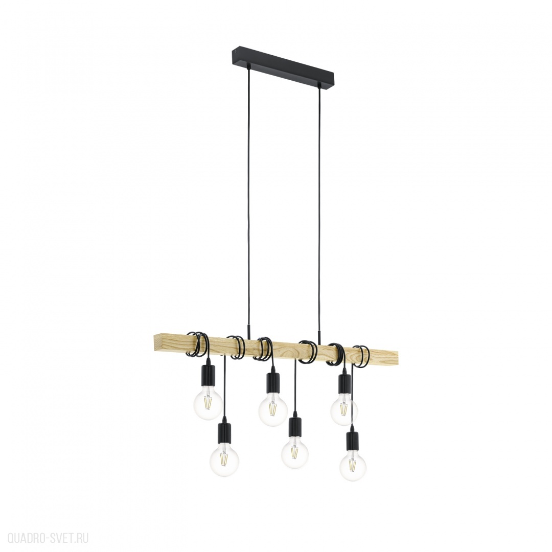 Подвес TOWNSHEND, 6х60W(E27), Ø490, L1000, сталь, черный/дерево, коричневый