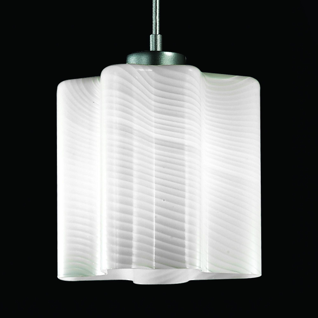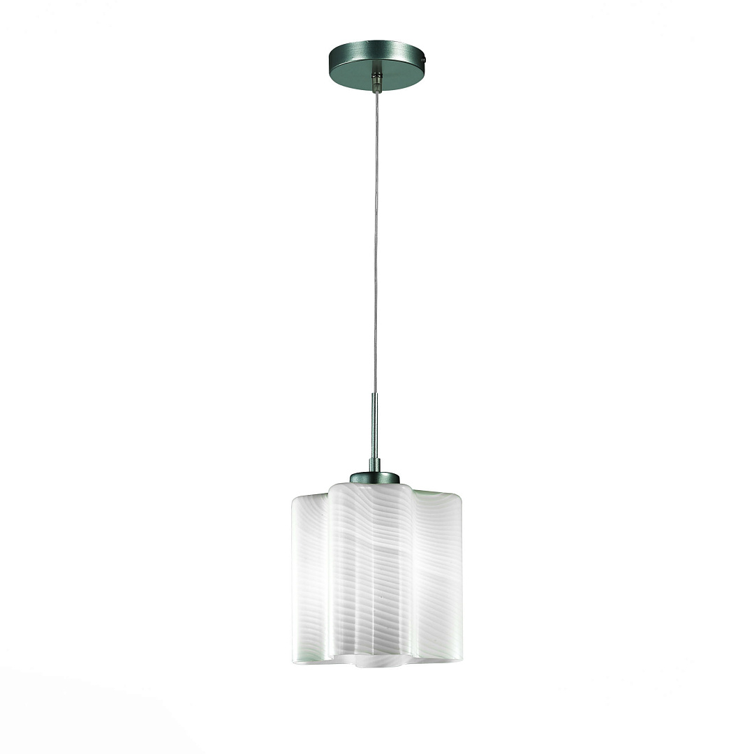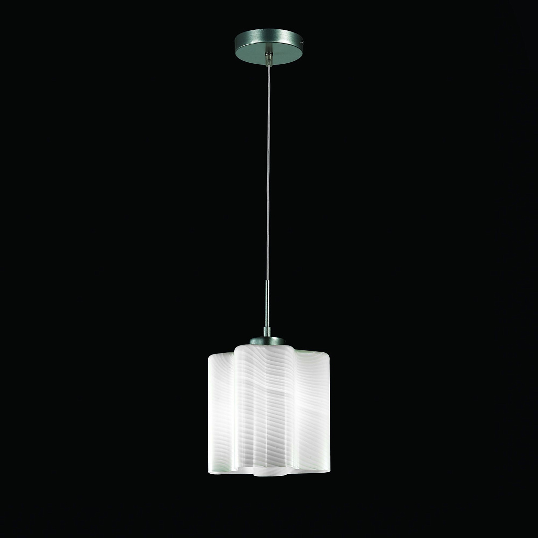 Подвесной светильник SL117.503.01 итальянского производителя ST Luce из коллекции ONDE исполнен в стиле модерн. Арматура светильника выполнена из металла серебристого цвета. Поверхность арматуры глянцевая. Плафон изготовлен из стекла белого цвета с полосками, имеет сложную форму и матовую поверхность. Направлен вниз. Осветительный прибор рассчитан на освещение пространства площадью 3 кв. м. Тип цоколя используемых ламп E27. Производитель рекомендует использовать лампы мощностью не более 60 Вт. Суммарная мощность светильника составляет 60 Вт. Лампочки в комплект не входят. Защита от попадания влаги и пыли внутрь изделия не предусмотрена. Рекомендуем к применению в гостиной, кабинете, прихожей, спальне.