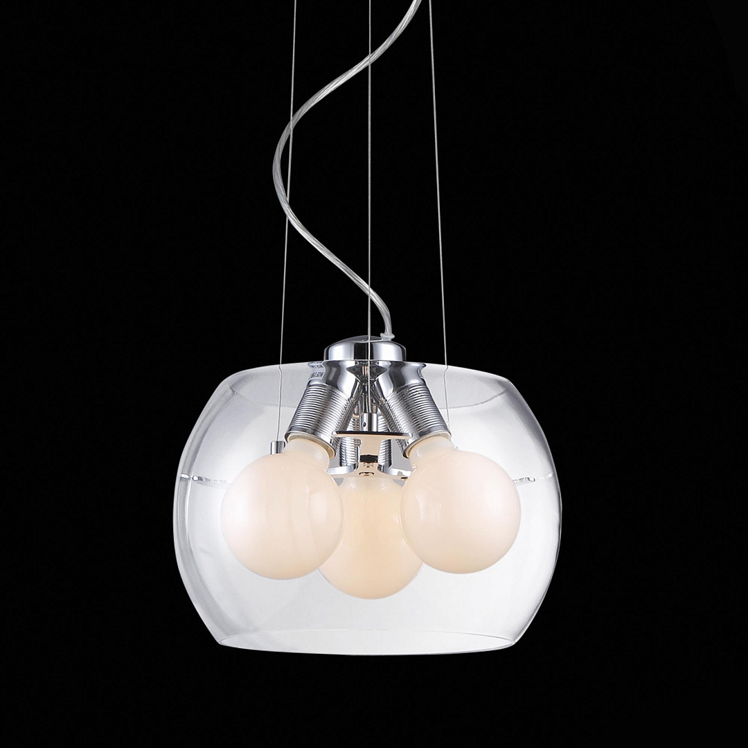 Подвесной светильник SL512.103.03 итальянского производителя ST Luce из коллекции UOVO исполнен в современном стиле. Арматура светильника выполнена из металла цвета хром. Поверхность арматуры глянцевая. Плафон изготовлен из стекла прозрачного цвета, имеет цилиндрическую форму и матовую поверхность. Направлен вниз. Осветительный прибор рассчитан на освещение пространства площадью 9 кв. м. Тип цоколя используемых ламп E27. Производитель рекомендует использовать лампы мощностью не более 60 Вт. Суммарная мощность светильника составляет 180 Вт. Лампочки в комплект не входят. Защита от попадания влаги и пыли внутрь изделия не предусмотрена. Цвет свечения теплый белый (2800K). Рекомендуем к применению в гостиной, кабинете, прихожей, спальне.