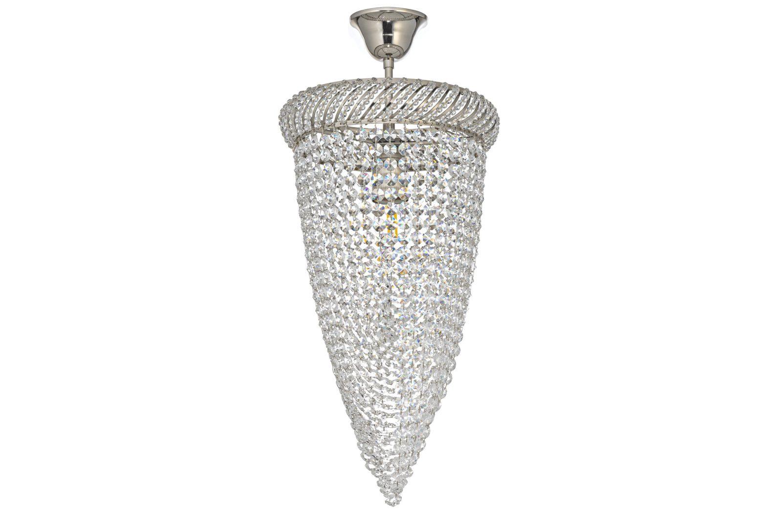 металла цвета никель. Поверхность арматуры глянцевая. Плафон изготовлен из хрусталя прозрачного цвета. с глянцевой поверхностью. Декоративные элементы выполнены из прозрачного хрусталя. Осветительный прибор рассчитан на освещение пространства площадью 3 кв. м. Тип цоколя используемых ламп E27. Производитель рекомендует использовать лампы мощностью не более 60 Вт. Суммарная мощность светильника составляет 60 Вт. Лампочки в комплект не входят. Защита от попадания влаги и пыли внутрь изделия не предусмотрена. Рекомендуем к применению в гостиной, кабинете, прихожей, спальне.