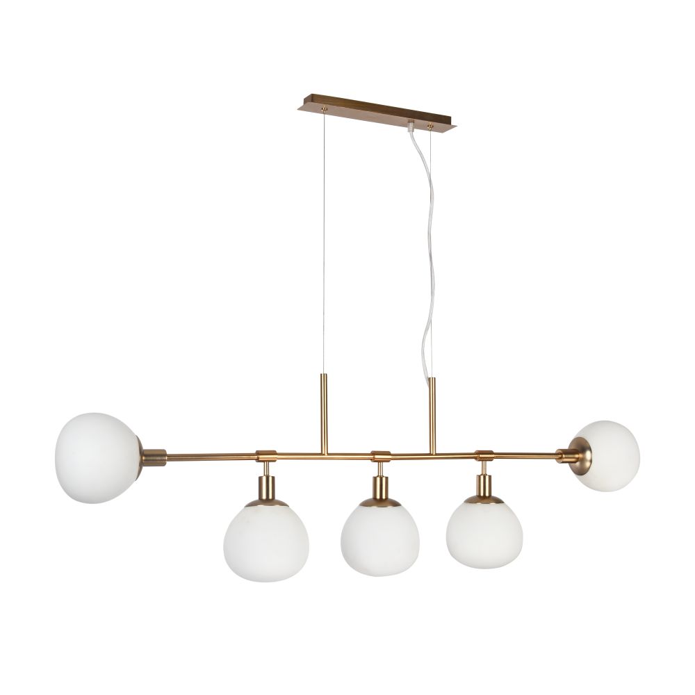 Подвесной светильник MOD221-PL-05-G производства Maytoni (Германия) из коллекции Erich выполнен в стиле модерн. Арматура светильника выполнена из металла золотого цвета. Поверхность арматуры глянцевая. Плафон изготовлен из стекла белого матового цвета, имеет сферическую форму и матовую поверхность. Направлен в стороны и вниз. Осветительный прибор рассчитан на освещение пространства площадью 10 кв. м. Тип цоколя используемых ламп E14. Производитель рекомендует использовать лампы мощностью не более 40 Вт. Суммарная мощность светильника составляет 200 Вт. Лампочки в комплект не входят. Защита от попадания влаги и пыли внутрь изделия не предусмотрена. Рекомендуем к применению в гостиной, кабинете, прихожей, спальне.