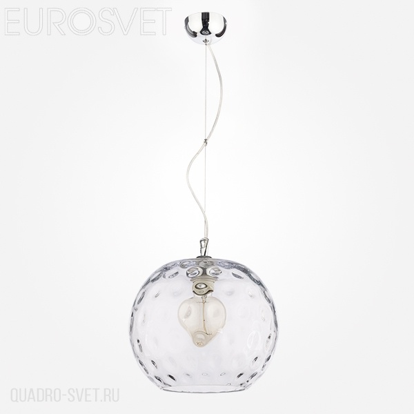 металла цвета хром. Поверхность арматуры матовая. Плафон изготовлен из стекла прозрачного цвета, имеет конусную форму и матовую поверхность. Направлен вниз. Осветительный прибор рассчитан на освещение пространства площадью 5 кв. м. Тип цоколя используемых ламп E27. Производитель рекомендует использовать лампы мощностью не более 60 Вт. Суммарная мощность светильника составляет 60 Вт. Лампочки в комплект не входят. Защита от попадания влаги и пыли внутрь изделия не предусмотрена. Рекомендуем к применению в гостиной, кабинете, прихожей, спальне.
